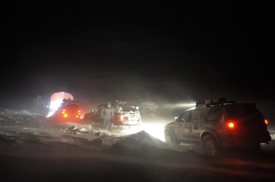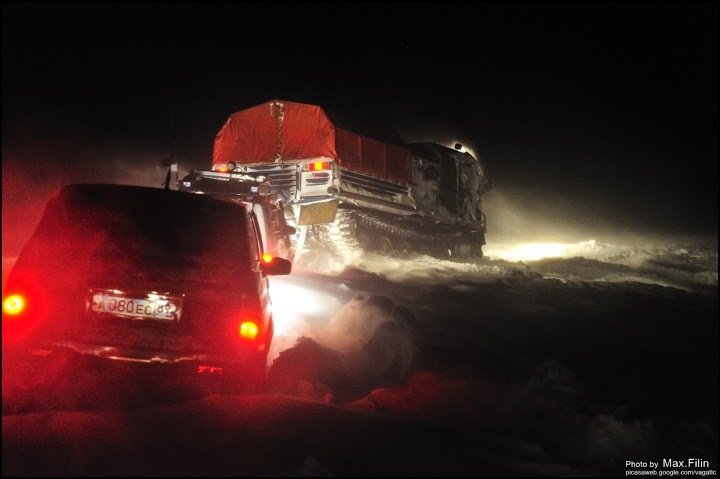 Отважные мужики! Хороший рассказ, классные фотки и видео! А мы тут живем и на подобные приключения можно попасть запросто отъехав от города недалеко, а в пургу, так и вовсе чуть-ли не в соседнем дворе. С той лишь разницей, что в соседнем дворе можно тачку бросить и пойти чай пить домой. А на зимнике не забалуешь…