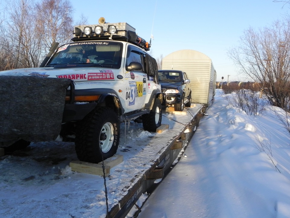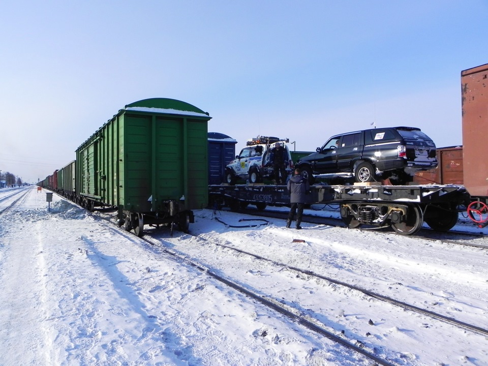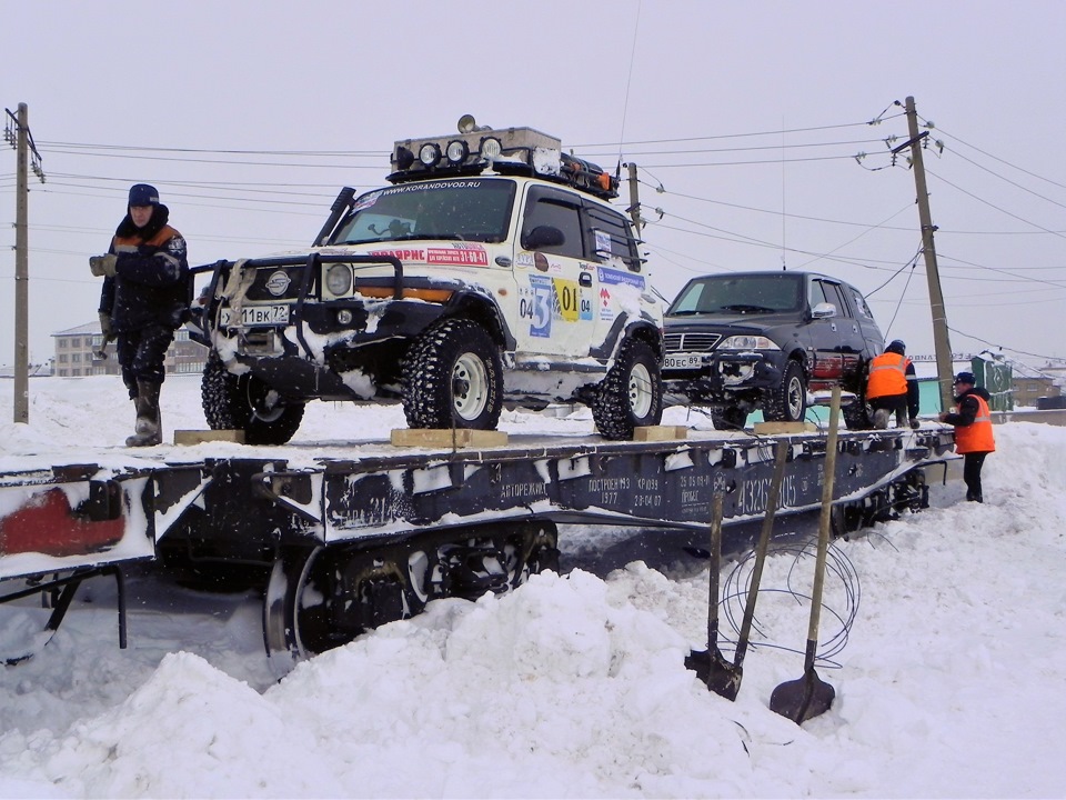 Нашему экипажу и экипажу Димы Кулика нужно было в Салехард. Нам потому, что это гораздо более близкий и короткий путь в Новый Уренгой. А тюменцам категорически не хотелось ждать, когда прочистят дорогу в сторону Инты, и потом возвращаться домой по своему следу. В итоге было принято решение погрузить две машины в Воркуте на платформу до Лабытнанги.