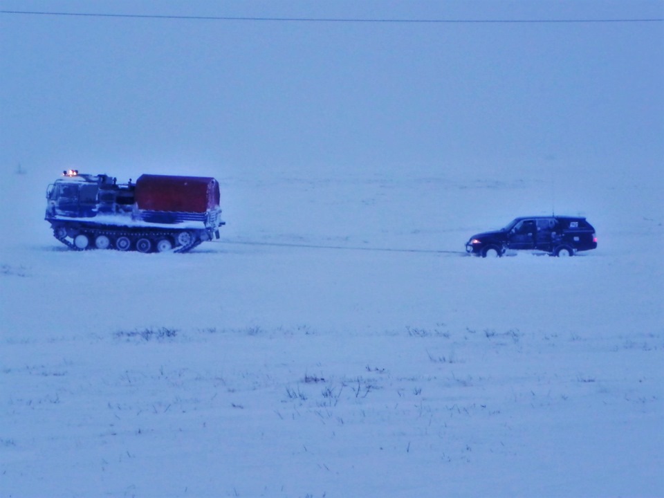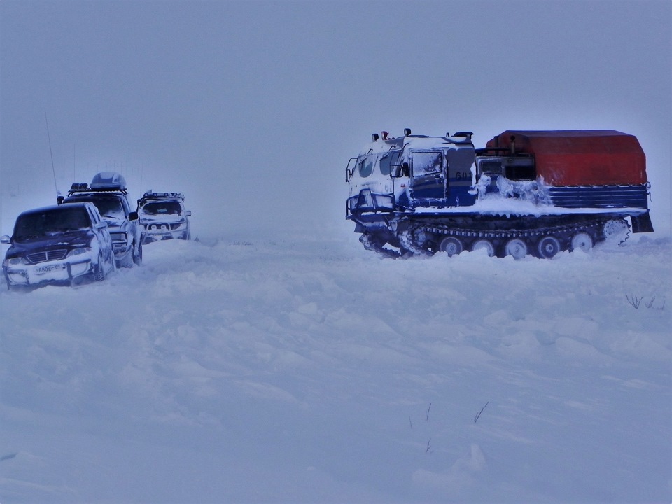 Получилось так, что ТМ-ка возила только себя, и любые попытки прицепить к ней машины быстро сходили на нет. Вездеход начинал буксовать и копать огромные ямы. Глубина колей доходила машинам до стекол, и был момент, когда я, болтаясь на тросе у вездехода, увидел, как у меня складывается боковое зеркало от напираемого сбоку снега.