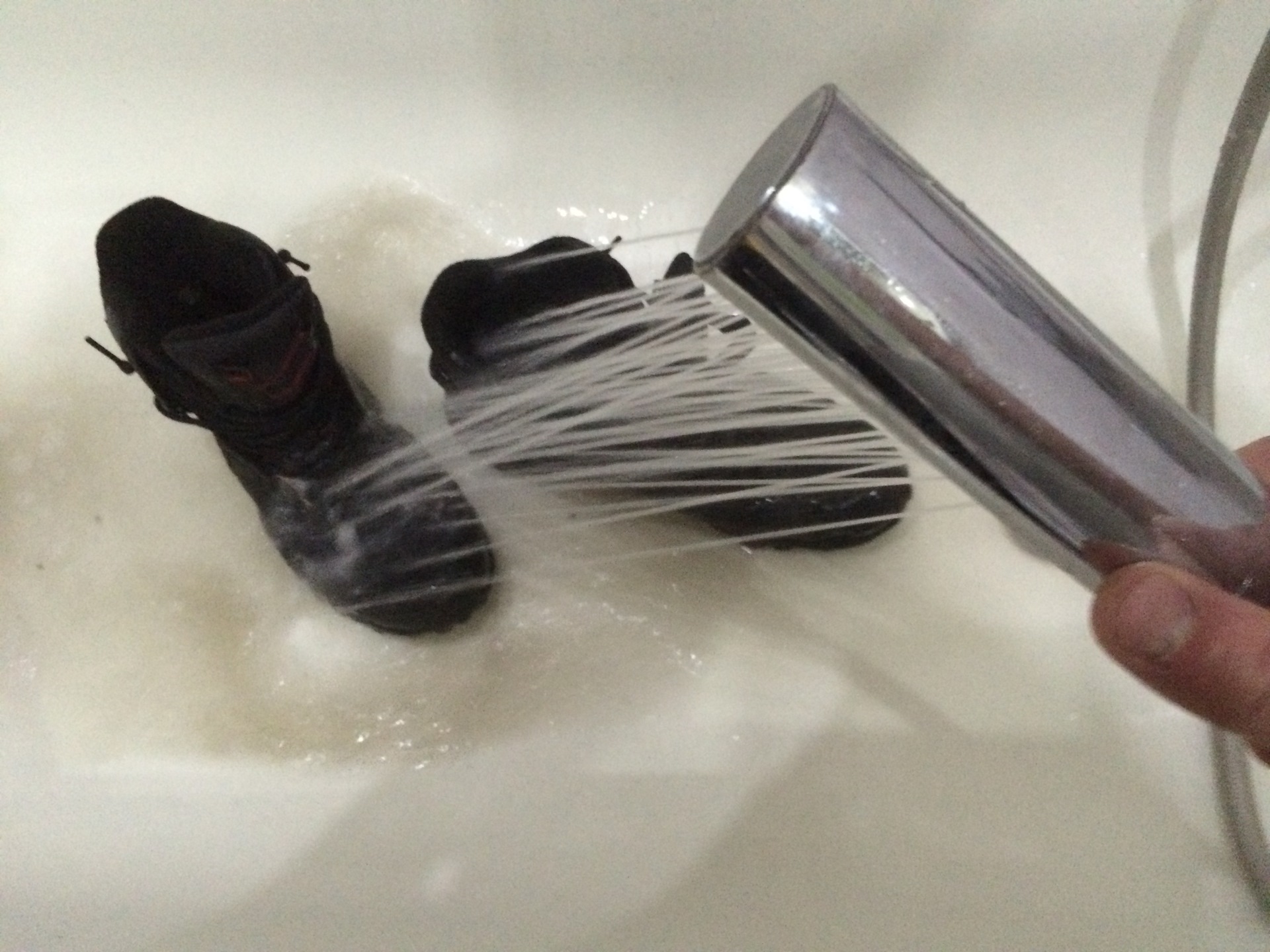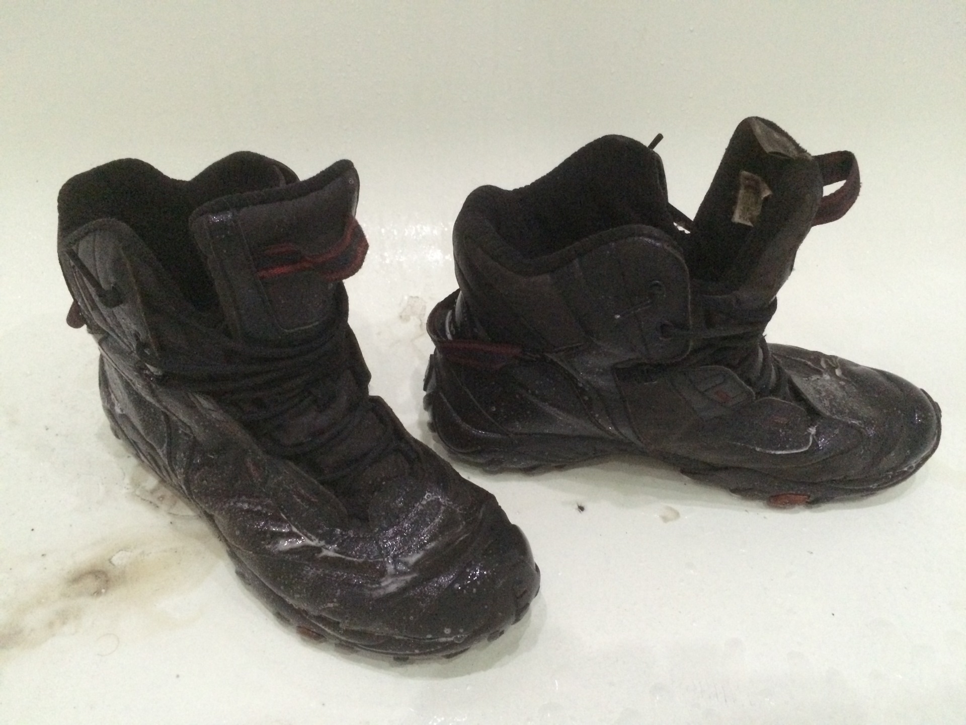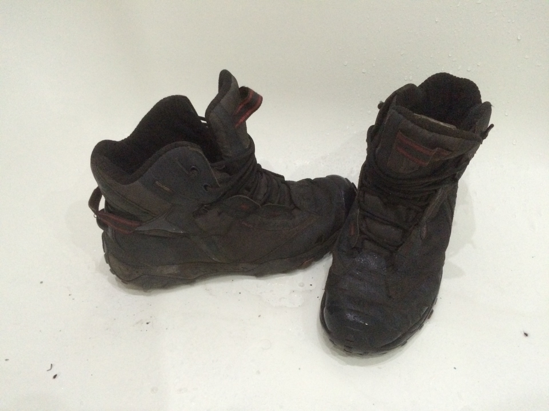 Фотка сделана не совсем в тот момент, когда надо было. Все часы, вся та боль, перенесённая обувью, стекала просто чОрной водой