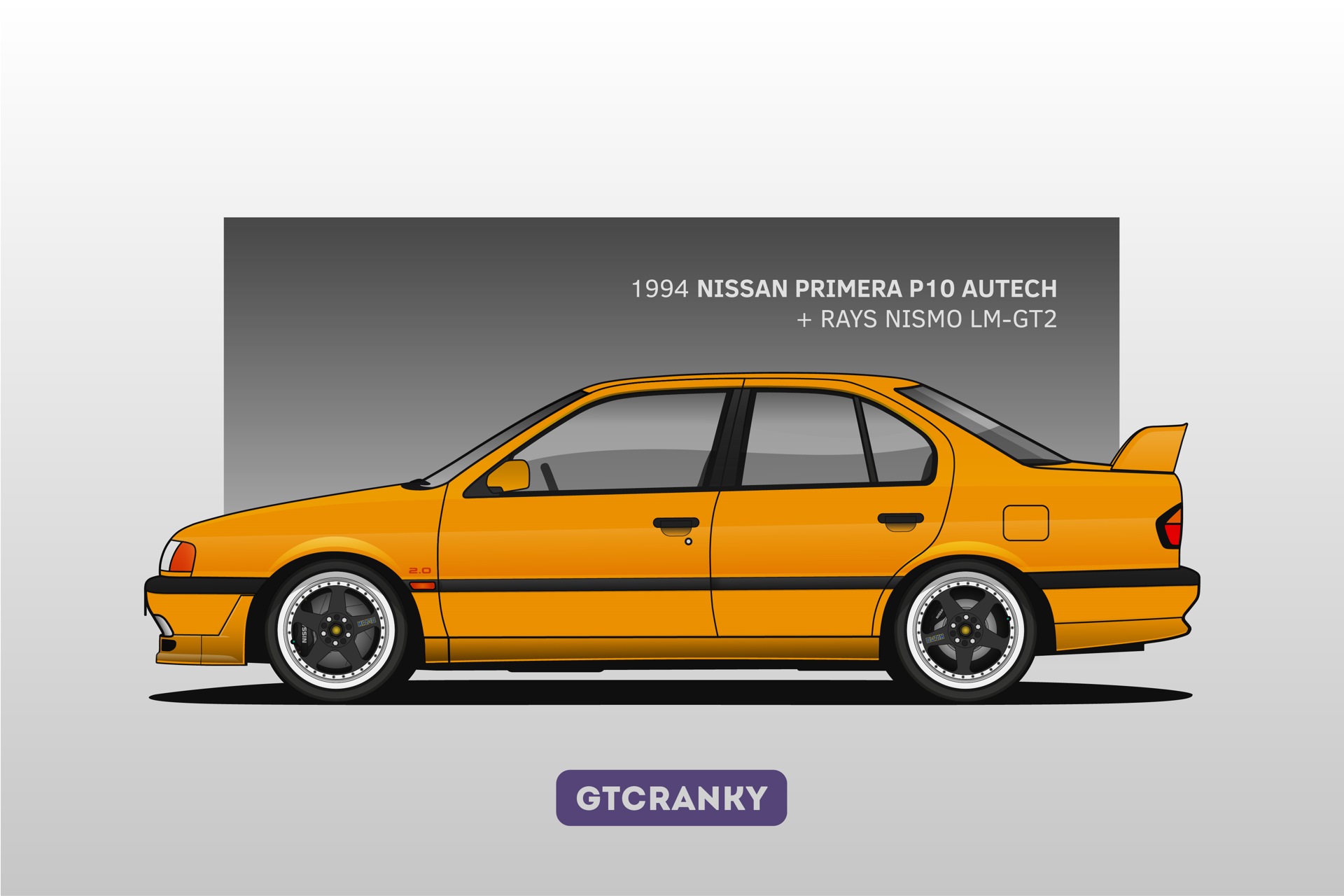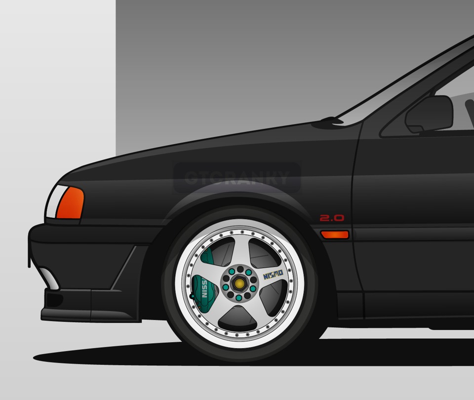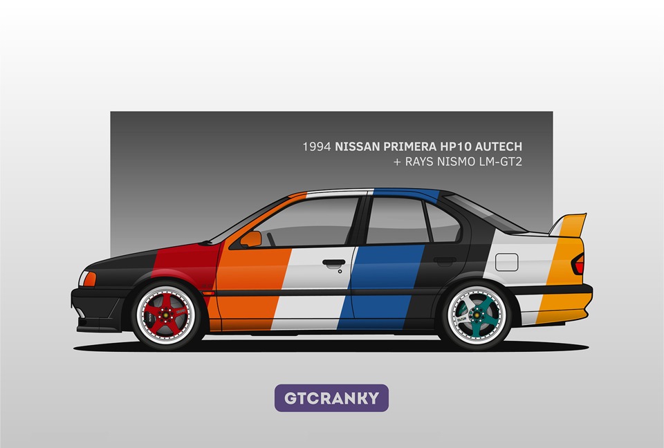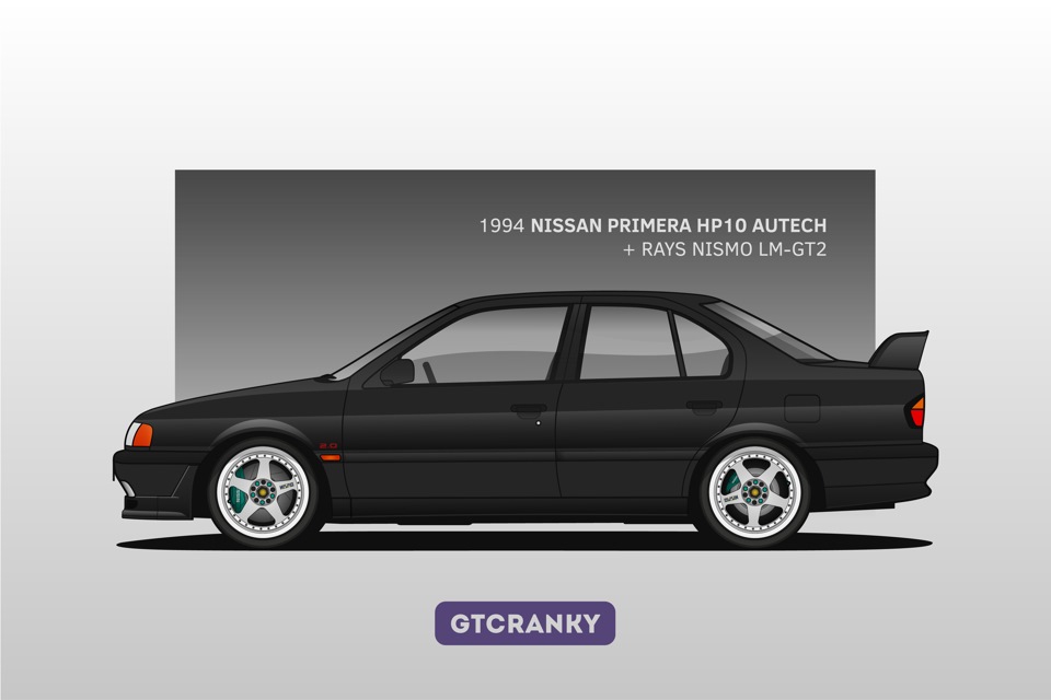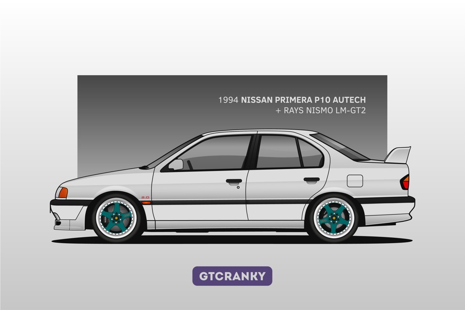 Чтобы, скажем так, расширить покрытие и «интересность» иллюстрации, я решил нарисовать модель, которая была на вершине линейки десятого кузова. Господа, представляю вашему вниманию Nissan Primera HP10 Autech — лимитированную версию со 180-сильным двигателем, выпущенную тиражом в 400 экземпляров только для японского рынка.