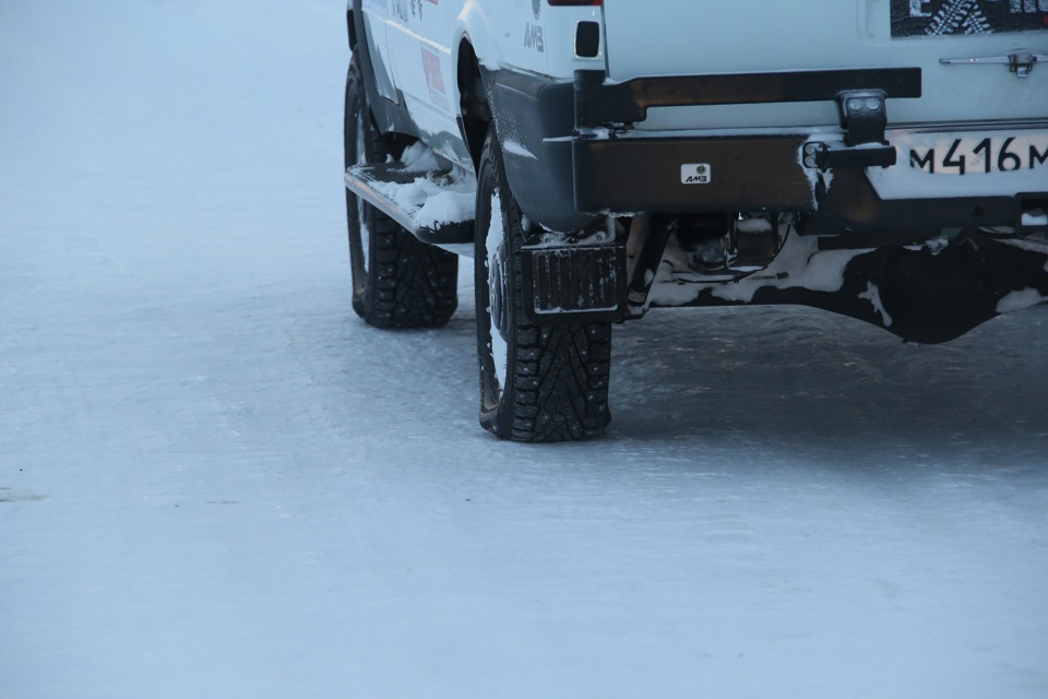 Белый Соболь ехал на Хакапелите 5, а Красный и Серый на Cooper Discovrer M+S LT. А ставить грязевой MT для езды по ледяным дорогам — кажется неправильным.