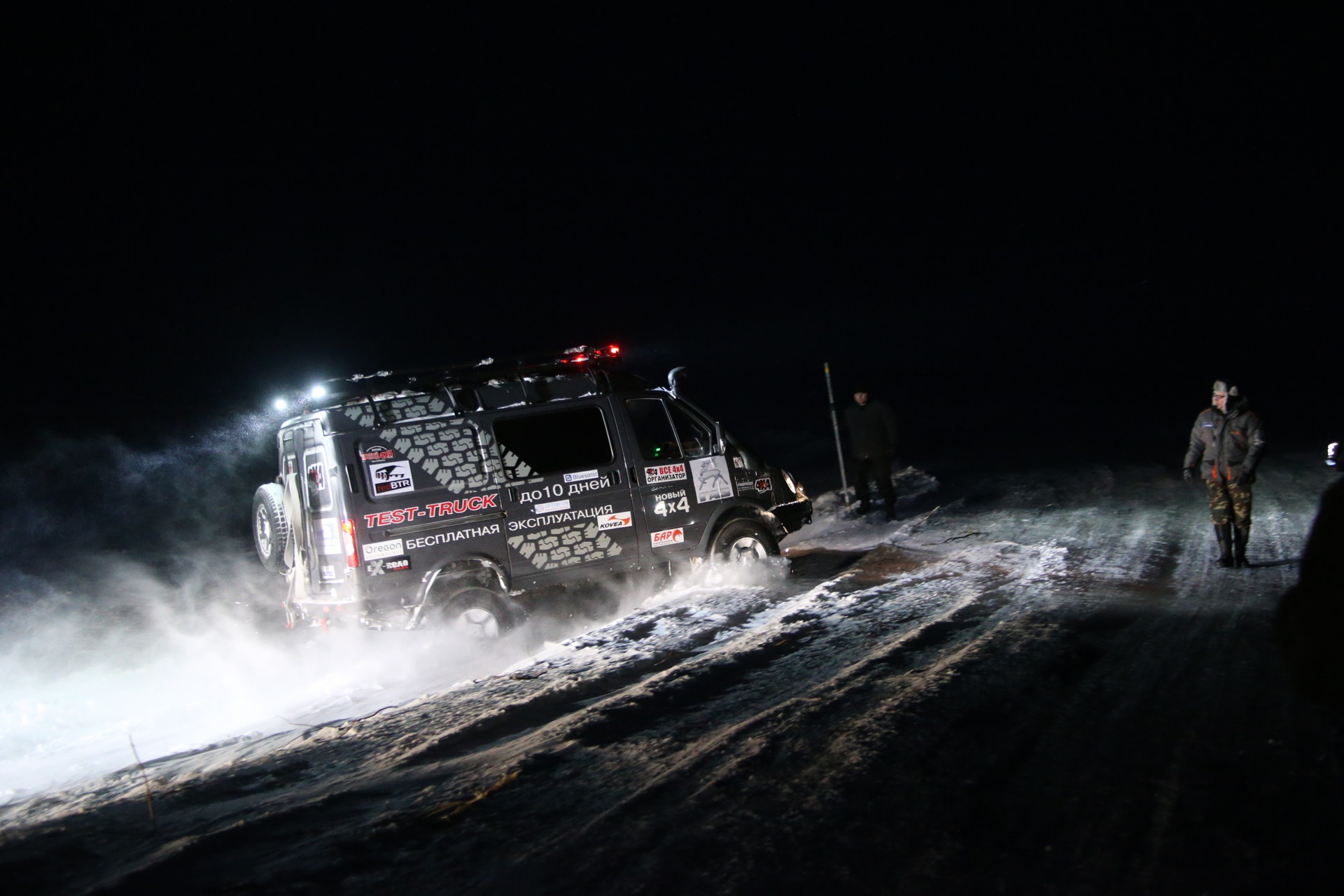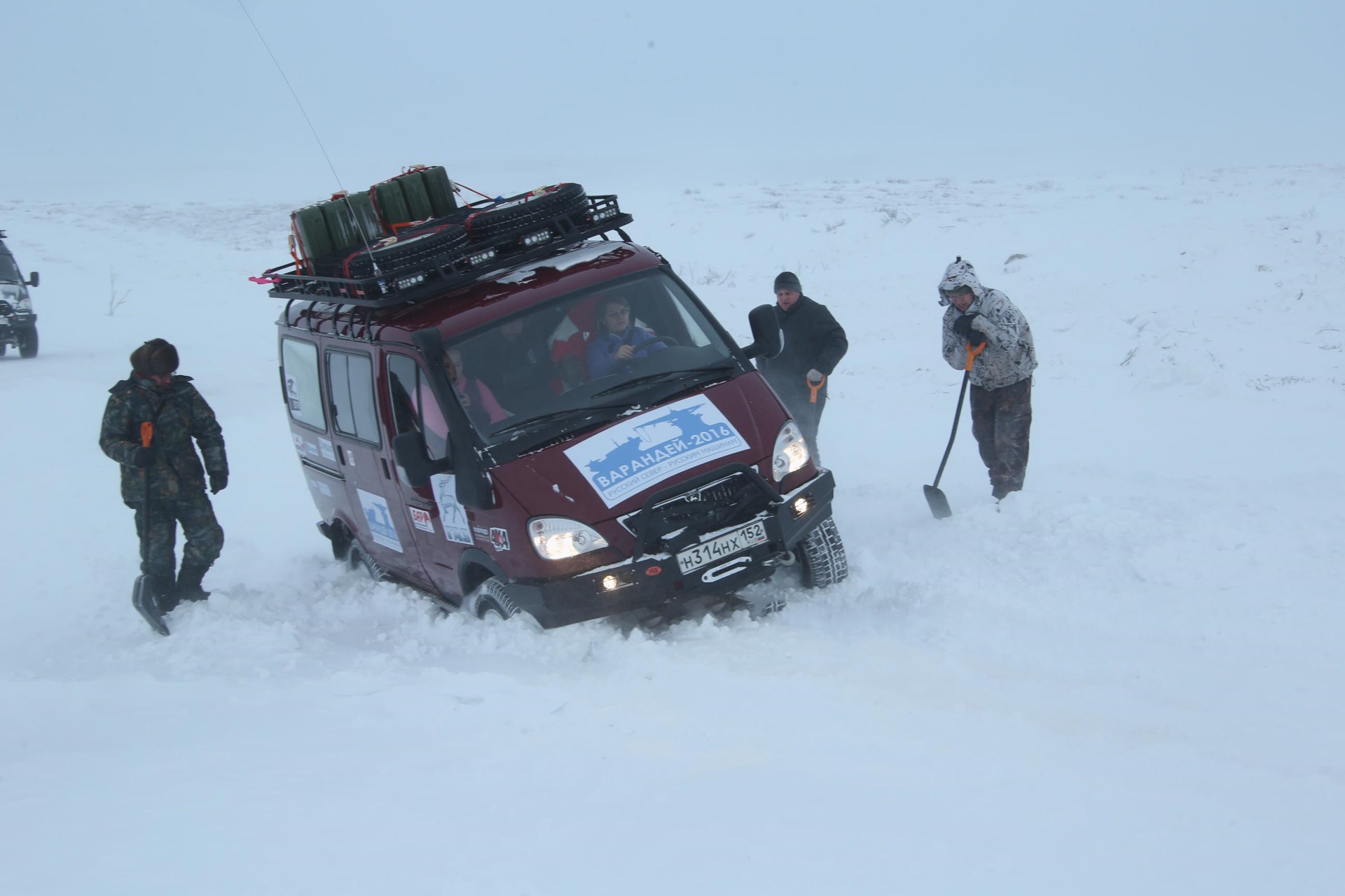 Я была поражена, как едет Петр Груздев – он накатывается, прямо наползает, наваливается на снег, без пробуксовки. И сразу назад, и опять вперед. Мне на дизеле ехать удобнее, чем ему на бензиновом Соболе – хорошая тяга снизу. Безусловно, все наше рубилово по снегу проходило на понижайке и с включенными обеими блокировками ( стояла дополнительная блокировка Eaton спереди).