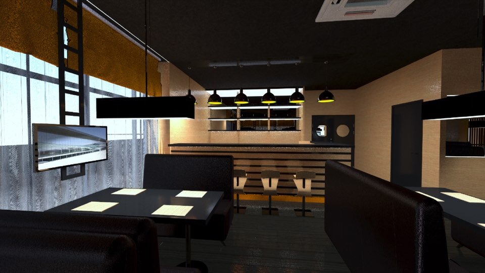 Кафе на 2-м этаже, мойка на 1-м. Мониторы над каждой зоной есть, на усмотрение процесс/кино и тд/приставки игровые + проектор для трансляции соревнований разных