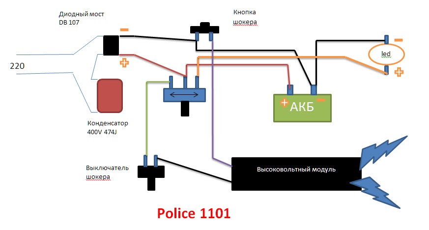 У меня фонарь POLICE 1101, куплен три года назад в будке на остановке общественного транспорта, не понимаю ваше негодование) До момента пока я снял заднюю крышку и вырвал все провода он прекрасно отработал 2 года, потом из-за моей рукожопости описанной выше и отсутствии в интернете вообще каких либо схем проводки он пролежал год в ящике, в итоге по этой схеме починил зарядку, выкинул все запчасти от шокера и думаю еще не один год он споокйно проработает. Причем фонарь стоял на руле велосипеда привязанный резинкой, а велосипед этот стабильно летает под 30-40 км/ч по бордюрам, корням деревьев, горам и т.п. и не только в сухую погоду. 2 года бесконечноый тряски, работы под дождем, снегом, отпугивания собак шокером и т.п. никак не сказались на состоянии фонаря. Качество, по крайней мере у моего, отменное