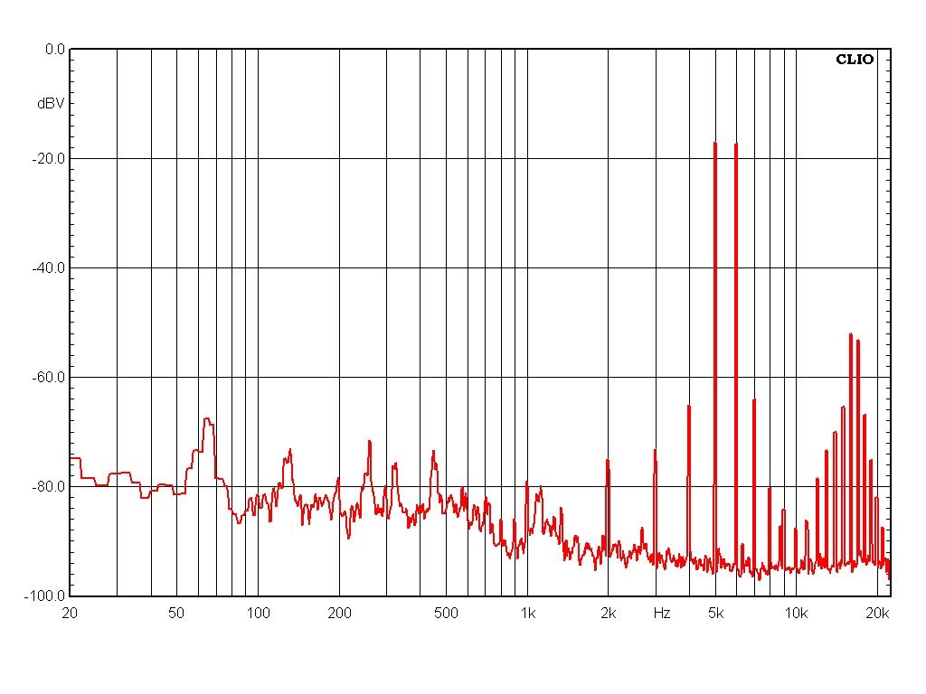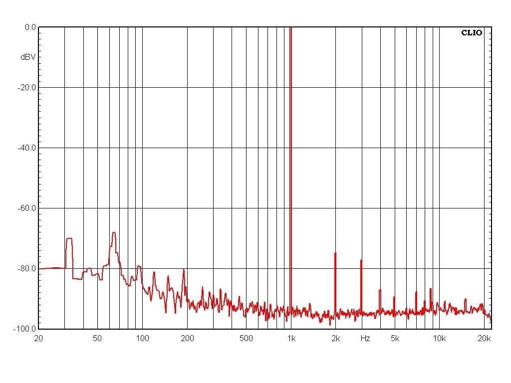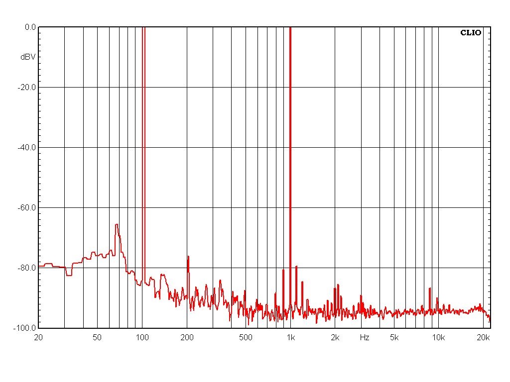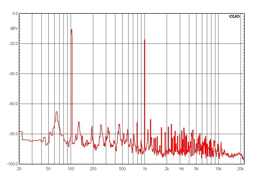 Чтобы хоть как-то увидеть паразитные гармоники, пришлось неслабо задрать усиление. Как видите, в плане гармонических искажений усилитель выглядит более чем достойно. Правда, судить о качестве усилителя только лишь по ним одним было бы ошибкой. Что там с динамическими искажениями, в том числе со "скорострельностью", покажет только прослушивание.