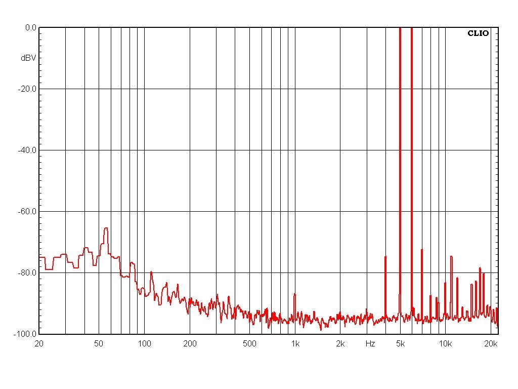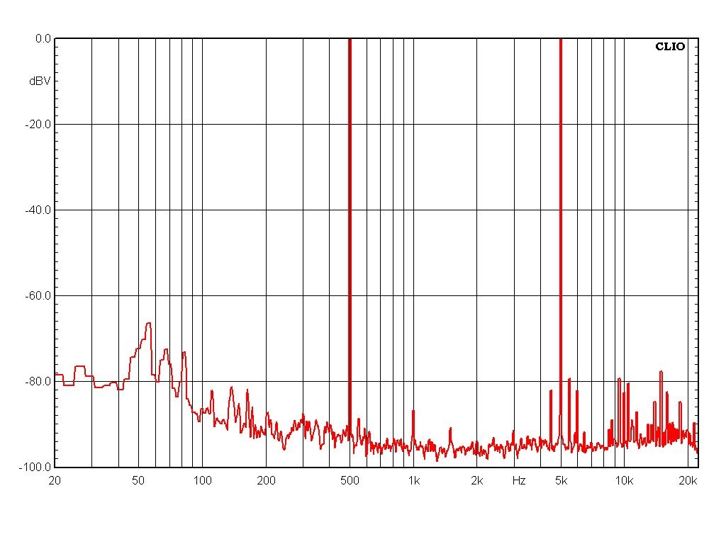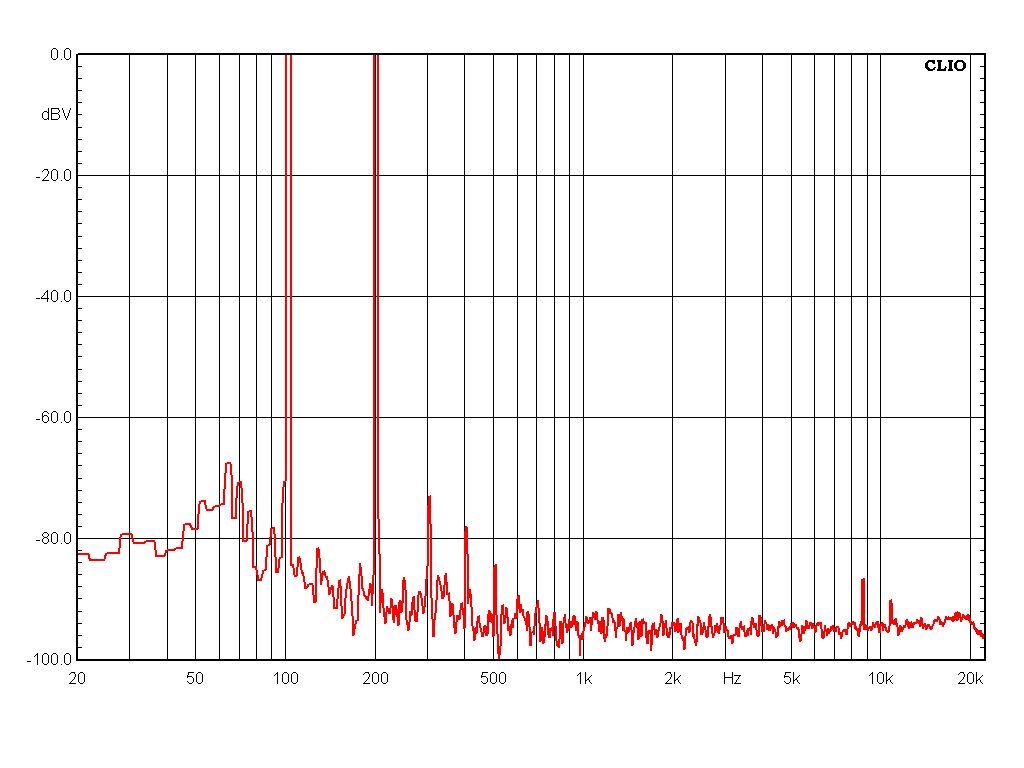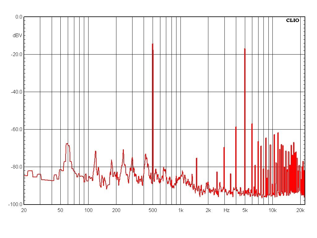 Чтобы хоть как-то увидеть паразитные гармоники, пришлось неслабо задрать усиление. Как видите, в плане гармонических искажений усилитель выглядит более чем достойно. Правда, судить о качестве усилителя только лишь по ним одним было бы ошибкой. Что там с динамическими искажениями, в том числе со "скорострельностью", покажет только прослушивание.