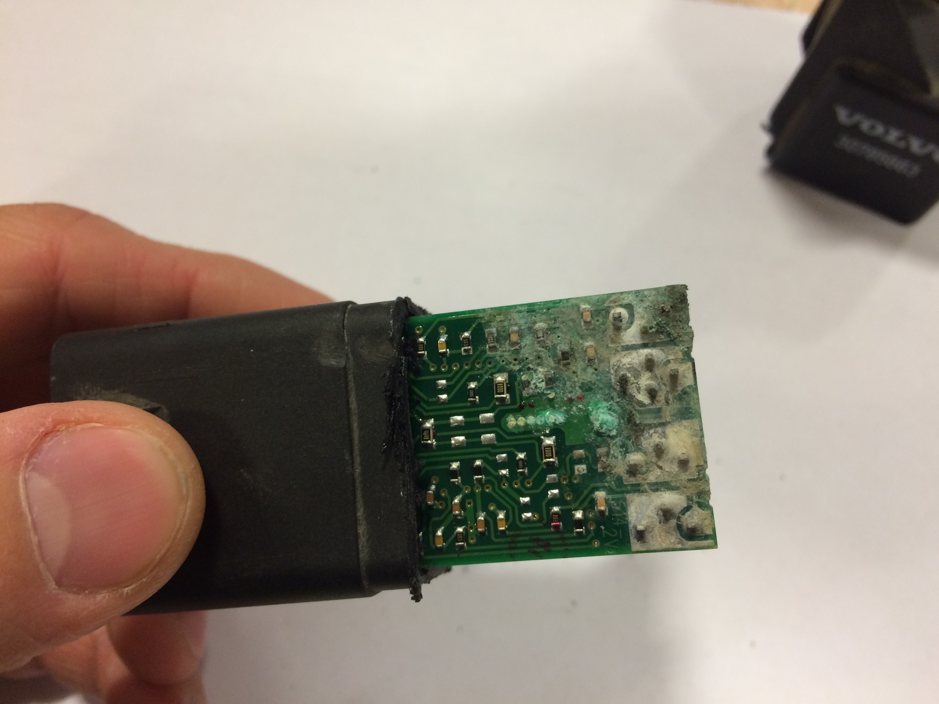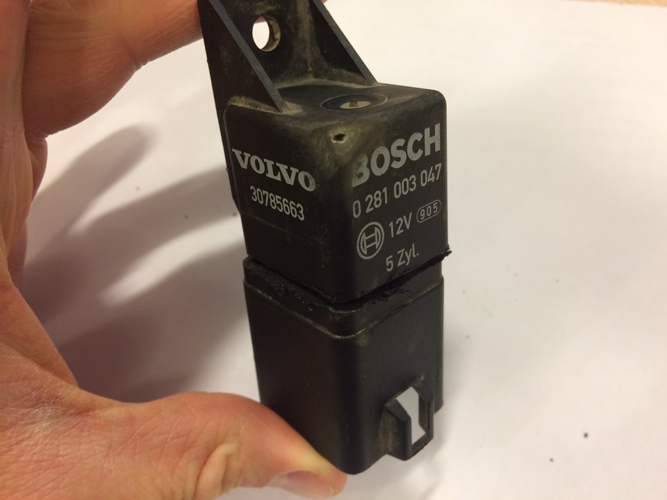 Вывод: либо реле, либо мозг ECU. Второй вариант маловероятен и дорог. Покупаю реле свечей накала Volvo XC60 артикул 31342686, ценник 5563р., работа по замене в РусВольво на рублевке 1300р. При демонтаже старого обнаружили, что у него сломано крепление (крепится к правому лонжерону под фарой) и само реле болталось на проводке и билось об лонжерон. Крепление было сломано при мелком ремонте первым владельцем. В результате протерся корпус, внутрь на схему попала вода и сгнила плата с силовыми тиристорами. Поставили новое реле, авто опять запускается с пол оборота.