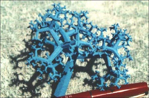 Кроме неплохой точности изготовления и высокой прочности полученных "распечаток", SLS обладает еще несколькими важными достоинствами. Во-первых, лазерное спекание позволяет изготовлять модели с подвижными частями — например, с работающими петлевыми соединениями, нажимающимися кнопками и так далее. Во-вторых, для SLS-процесса разработаны специальные материалы, позволяющие напрямую изготавливать металлические детали. В качестве порошка здесь используются микрочастицы стали, покрытые сверху слоем связующего пластика. Спекание пластика происходит как обычно, а затем "отпечатанная" деталь обжигается в печи. При этом пластик выгорает, а освободившиеся поры заполняются бронзой. В результате, получается объект, состоящий на 60% из стали и на остальные 40% и бронзы. По своим механическим характеристикам он превосходит алюминий и приближается к классической нержавеющей стали. Фактически, SLS уже сейчас позволяет производить полноценные металлические предметы, причем произвольной формы. Кроме того, имеется аналогичный материал с керамической или стеклянной сердцевиной — из него можно делать модели, устойчивые к высоким температурам и агрессивным химическим веществам. Если бы только сам процесс не был так дорог…
