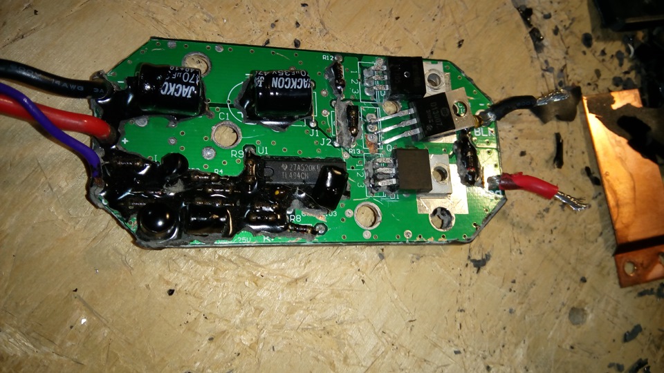 Плата залита компаундом он очень хорошо отходит если нагреть феном. Только будьте аккуратны не сдуйте распаянные элементы)