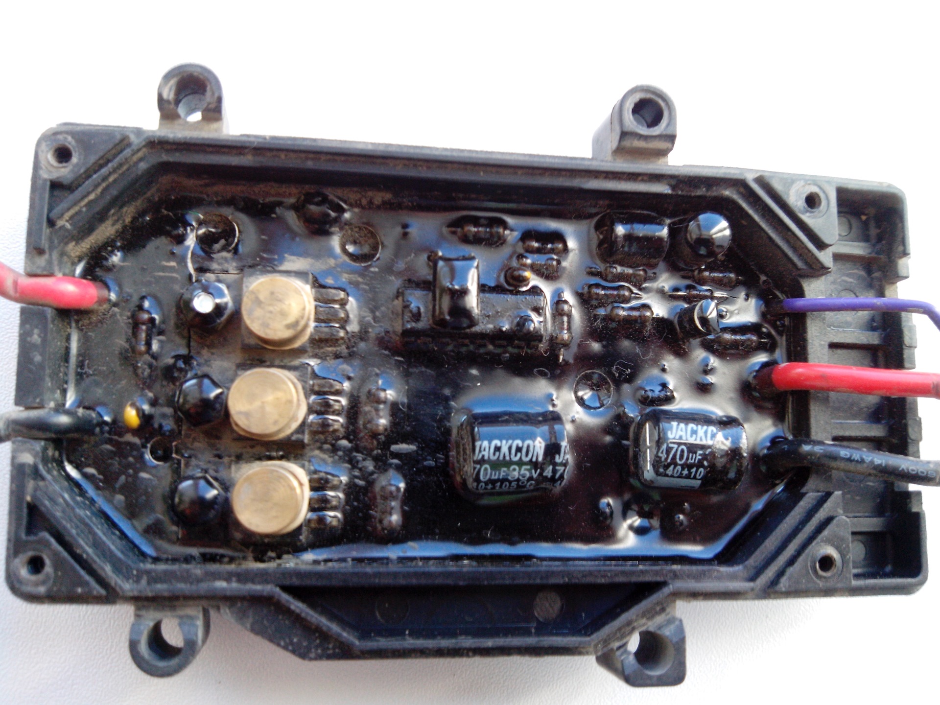 После Замены транзистора сразу попробовали на реакцию вентилятора от ключа (при не исправном вентилятор работал на не заведенном двигателе.) Все ровно молчит!). Решили проверку на включение отложить на следующий день. Брат, уже дальше сам залил для герметичности термостойким Силиконовым герметиком и оставил сохнуть.