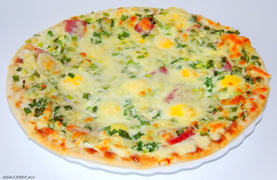 Прикольная основа, у нас такой нет. С яйцами не делал никогда. Надо попробовать. А как себя сулугуни в пицце ведет, я стараюсь только моцареллу или голландский кидать?