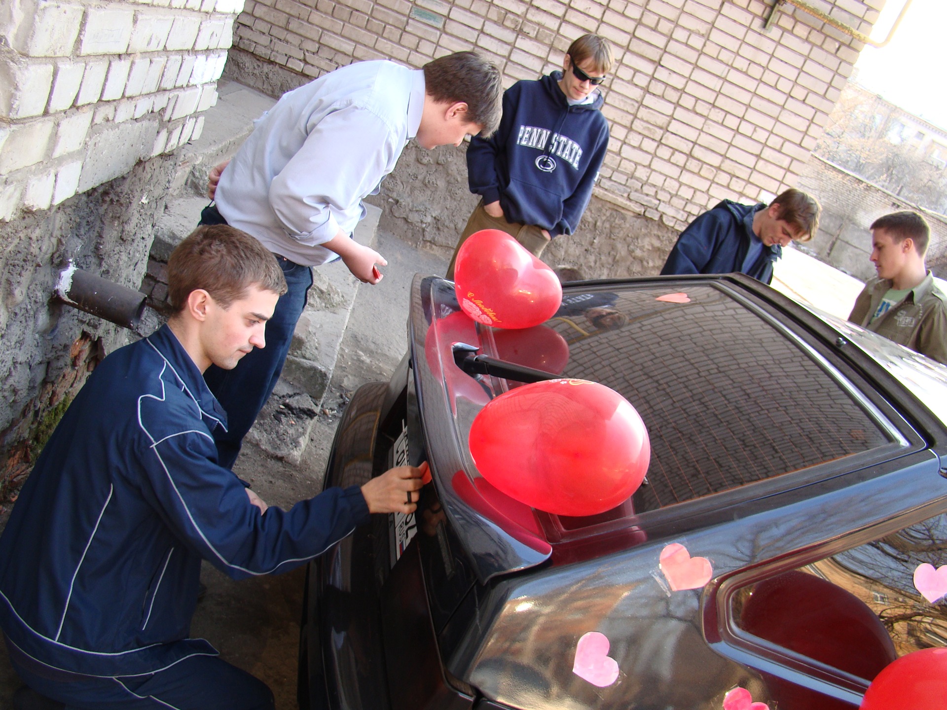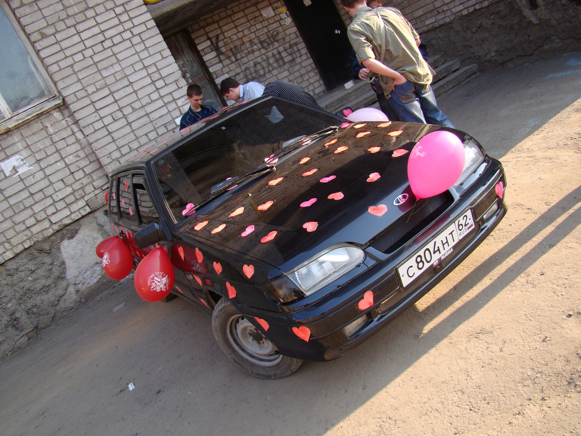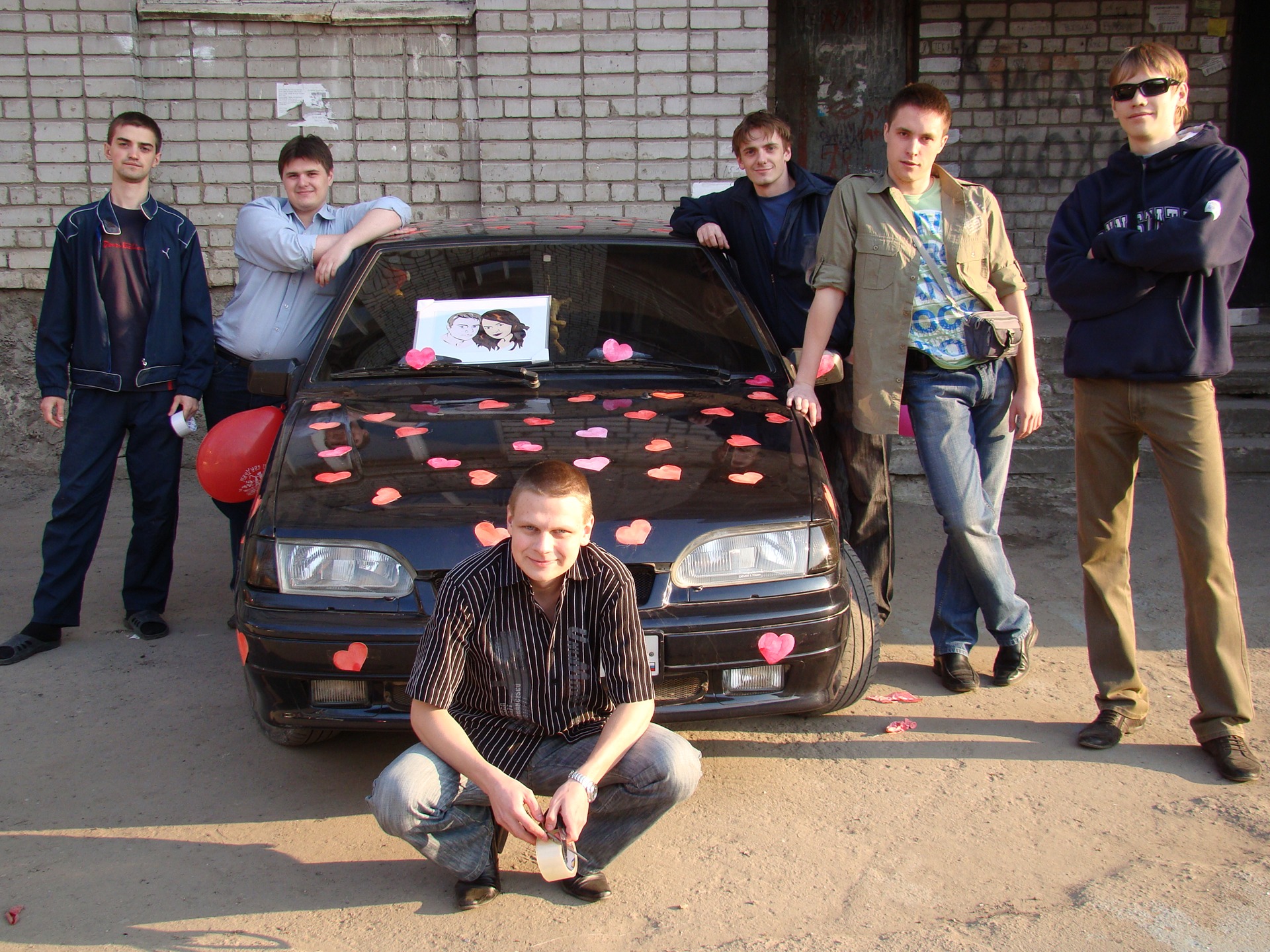 Вторым немаловажным аспектом в этой главе хочется отметить мою ласточку, вернее то, как она была украшена к началу действия. С утра была тщательно вымыта, а к вечеру усилиями моей команды приобрела шикарный вид: по всему кузову расклеены красные сердечки и шары. В общем я такого не видел ни на одной свадьбе. Оно и неудивительно! То, как скрупулезно красились и вырезались эти сердечки, а в последствии лепились на машину, достойно памятника терпения и выдержки. Зато результат превзошел все ожидания!