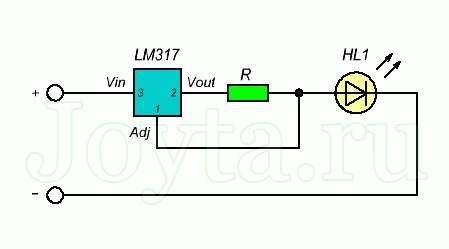 Для этого берем LM317 если нужно стабилизировать ток в пределах до 1 ампера или LM317L если необходима стабилизация тока до 0,1 А. Даташит можно скачать здесь!