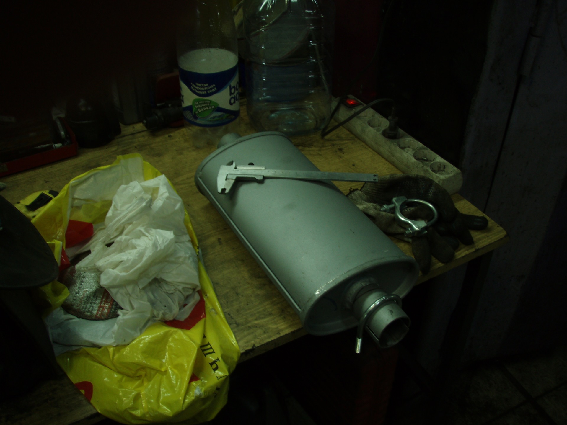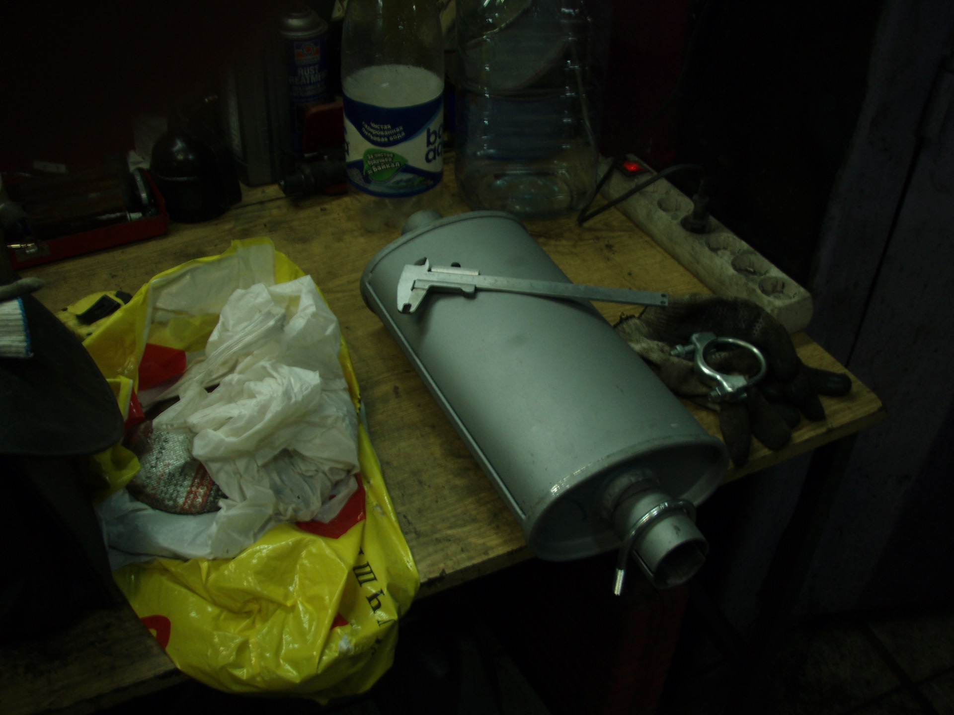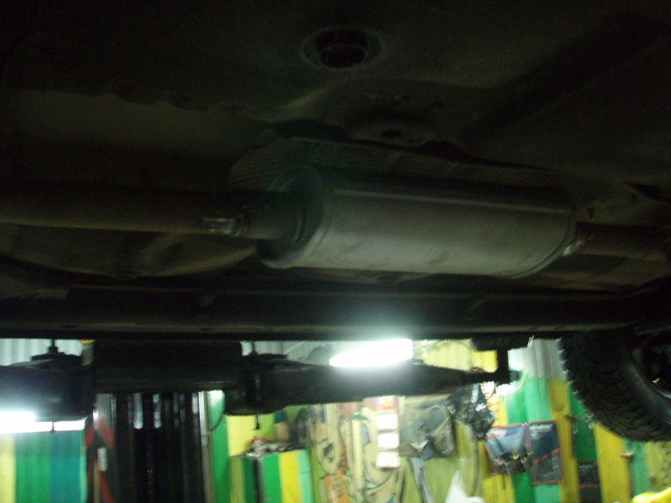 И после некоторых плясок с бубном и подгонок, новый резонатор был водружен на свое законное место. Хомуты использовал обыкновенные жигулевские. Которые лежали у меня в гараже еще от каких-то предыдущих работ.