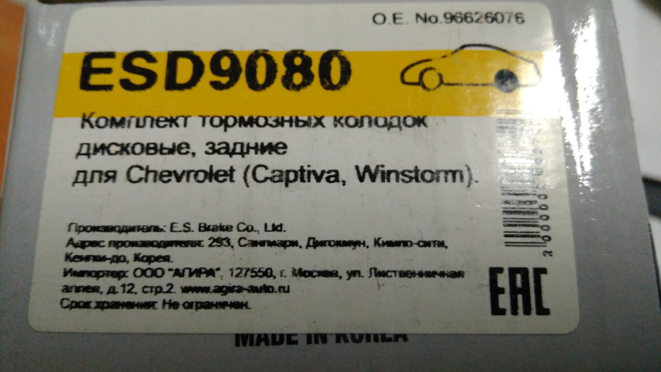Мне прислали из Емекса колодки Yes-Q ESD9080 и ESD9079
