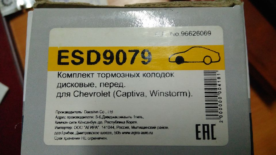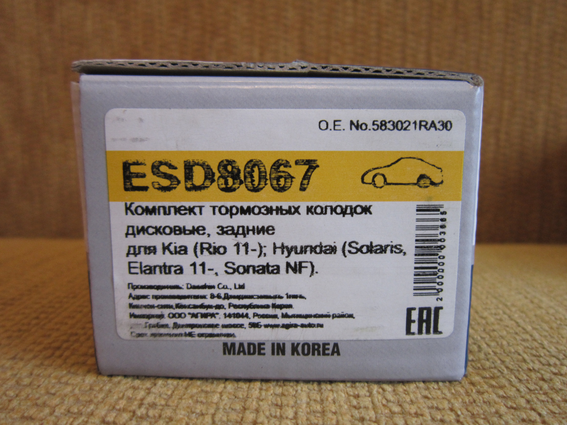 Добрый день! Я представитель компании импортера колодок YES-Q ваши колодки ESD7052 передние и ESD8067 задние. В emex точно есть.