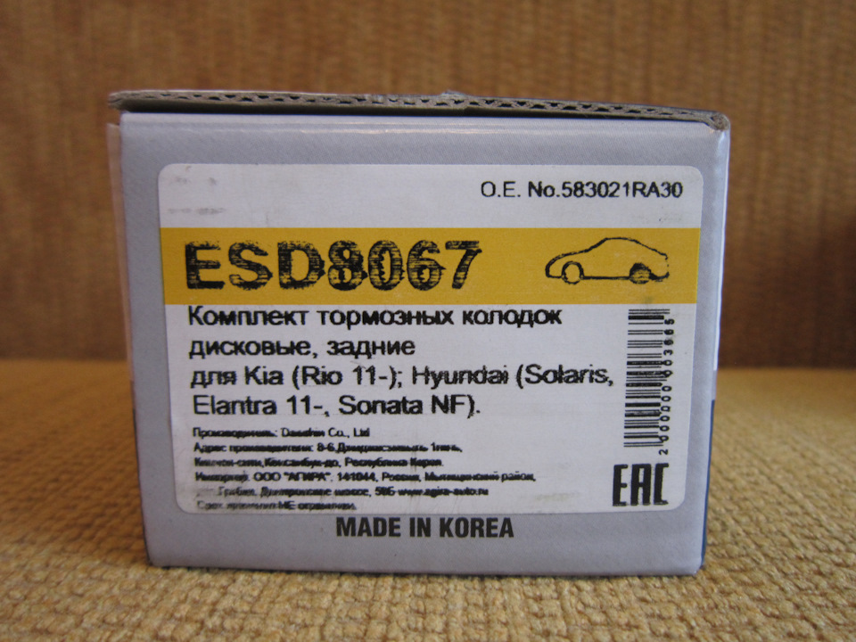 Приветствую! В очередной раз заказал колодочки YES-Q на Солярис. Приехали вот такие. артикулы те же, коробки почти те же. Только фирма производитель теперь не ESB, как раньше, а DAE SHIN CO LTD. что можете сказать по этому вопросу? Нормальный производитель? Я так понимаю сменился? Спасибо!
