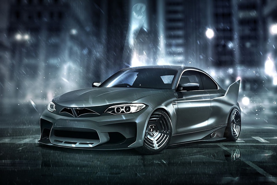 тут просто небольшая отсылка к БМВ 2002 Турбо — которую называли бэтмобилем, м2 ее идеологический преемник — поэтому такой выбор