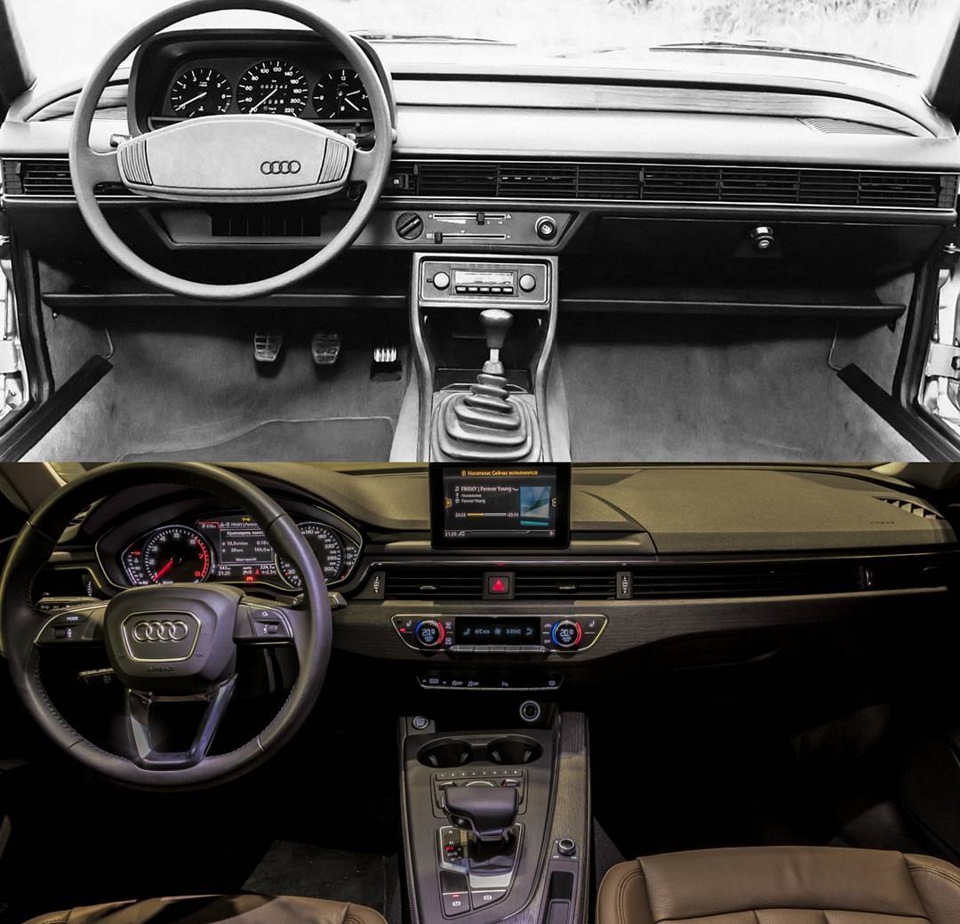 Такая панель Ауди появилась еще в 80-ых. А что касается внешнего вида, то он хоть и незначительно изменился, но все равно просматривается