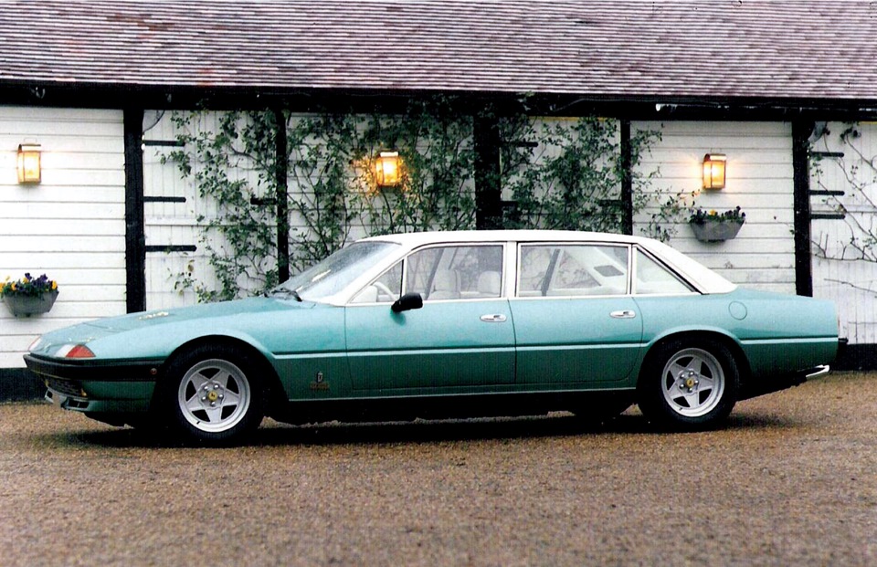 Говоря о большом купе Ferrari стоит, наверное, упомянуть и созданный в 1980 году концепткар люксового седана Ferrari Pinin (#99788). Как следует из названия, машина была спроектирована и построена в кузовном ателье Pininfarina. Причем дебют седана был приурочен к полувековому юбилею фирмы и посвящался отцу-основателю — Батисте Пининфарине.