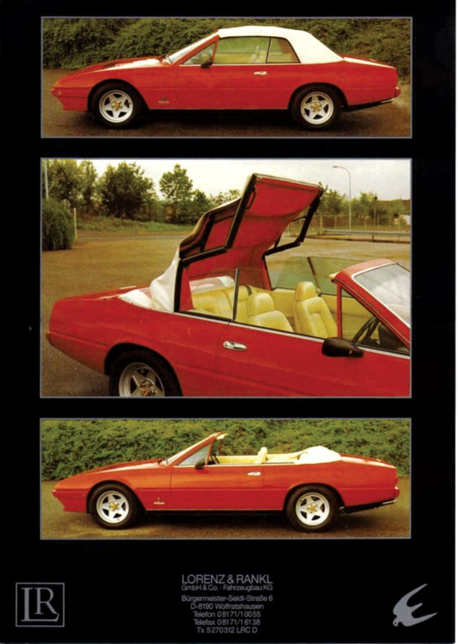 Крыша данного авто состояла из двух съемных панелей, разделенных стационарной центральной балкой. Кроме того, ровное заднее стекло посредством электропривода могло опускаться между двумя боковыми панелями, переходящими в хвост. Эту модель заказал Этьен Айгнер, основатель компании по производству кожаных изделий и спонсор швейцарца Клея Регаццони.