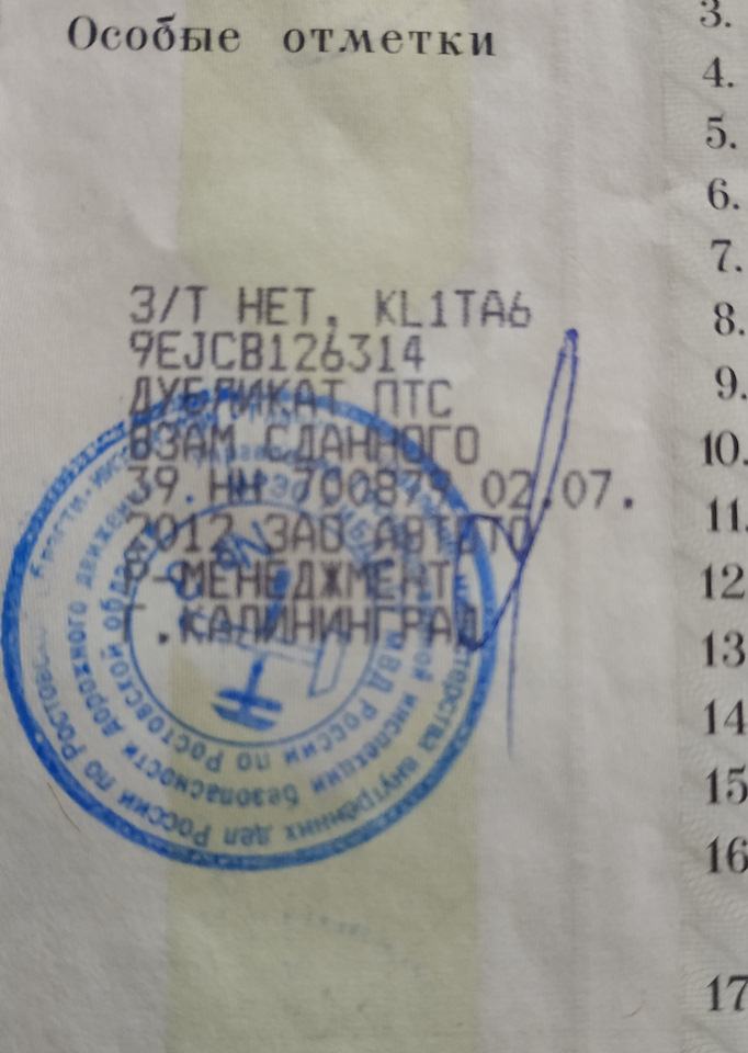 У меня вопрос к особым отметкам в птс. Купил авто шевроле авео т300 в 2019г потом только обратил внимание на отметку в птс. Там вписан корейский вин код. И кое что еще.- Вылаживаю фото. Кто нибудь может прокоментировать запись. В самой птс нет штампа, что это дубликат.