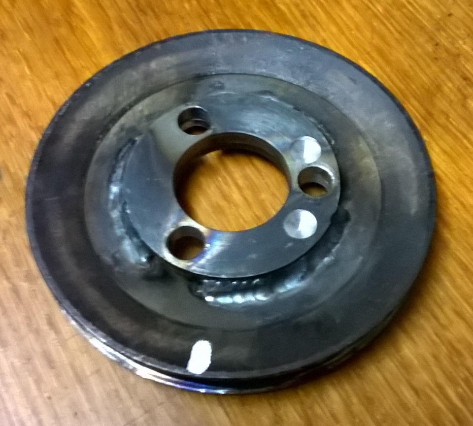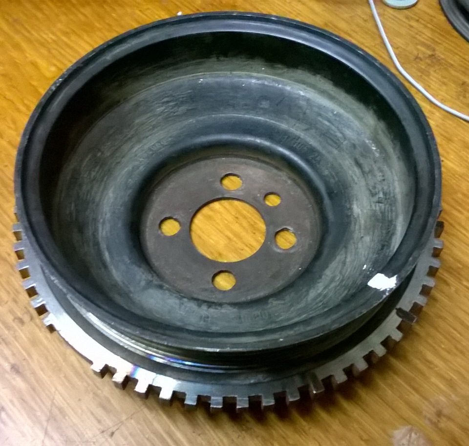 1. Триггерное колесо для ДПКВ — изготовлено отдельно, установлено, приварено и отбалансировано на родной шкив от родного мотора 1.8 (75 л.с.). На мотор 9А установлено навесное от родного мотора 1.8(75 л.с.) — генератор, насос ГУ-руля соответственно с приводными шкивами под многоручейковый ремень.
