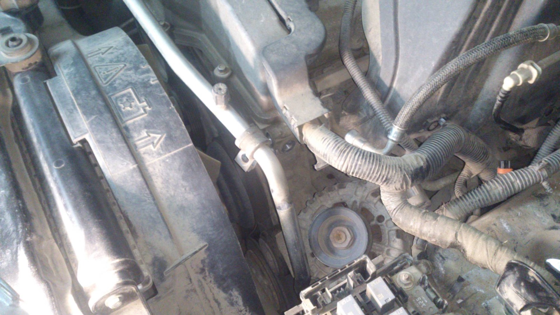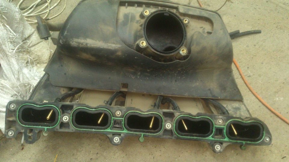 Чтож, время наше пошло, скидываем АКБ, отщелкиваем трубку кондиционера и упорно пытаемся демонтировать коллектор.
