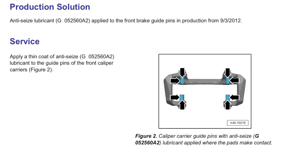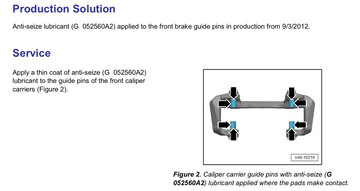 TRW PFG 110 есть такая смазка, намазал ей направляющие скобы где идет соприкосновение с колодкой на А6, говорят надо брать керамическую… а эта для направляющих под пыльником — которых у меня или нет или я их тупо намазать не могу и для суппорта тоже под пыльник.