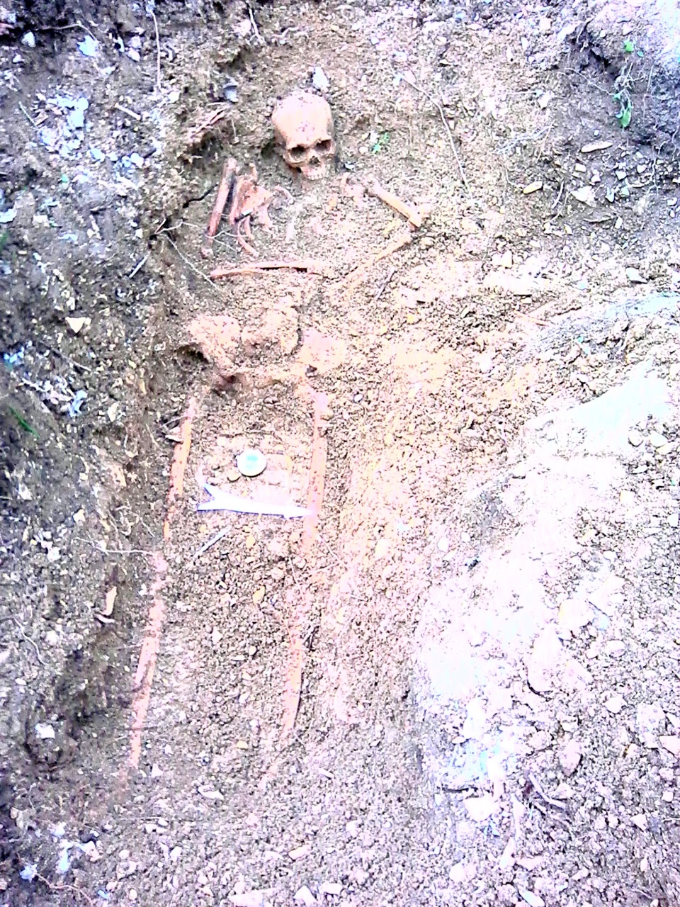 в каждом раскопе были найдены крючки от нижнего белья и пуговицы от верхней одежды (как пластмассовые, так и металлические), 2 химических карандаша и инд. пакет (сильно повреждённый).