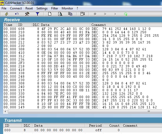 А дальше пошел анализ. Выяснив к примеру что сигнал о оборотах и уровне масла идет в пакете с ID 308, сигналы о неисправности ламп в пакете с ID 004, температура воздуха и уровня топлива в пакете ID 041 и т.д.
