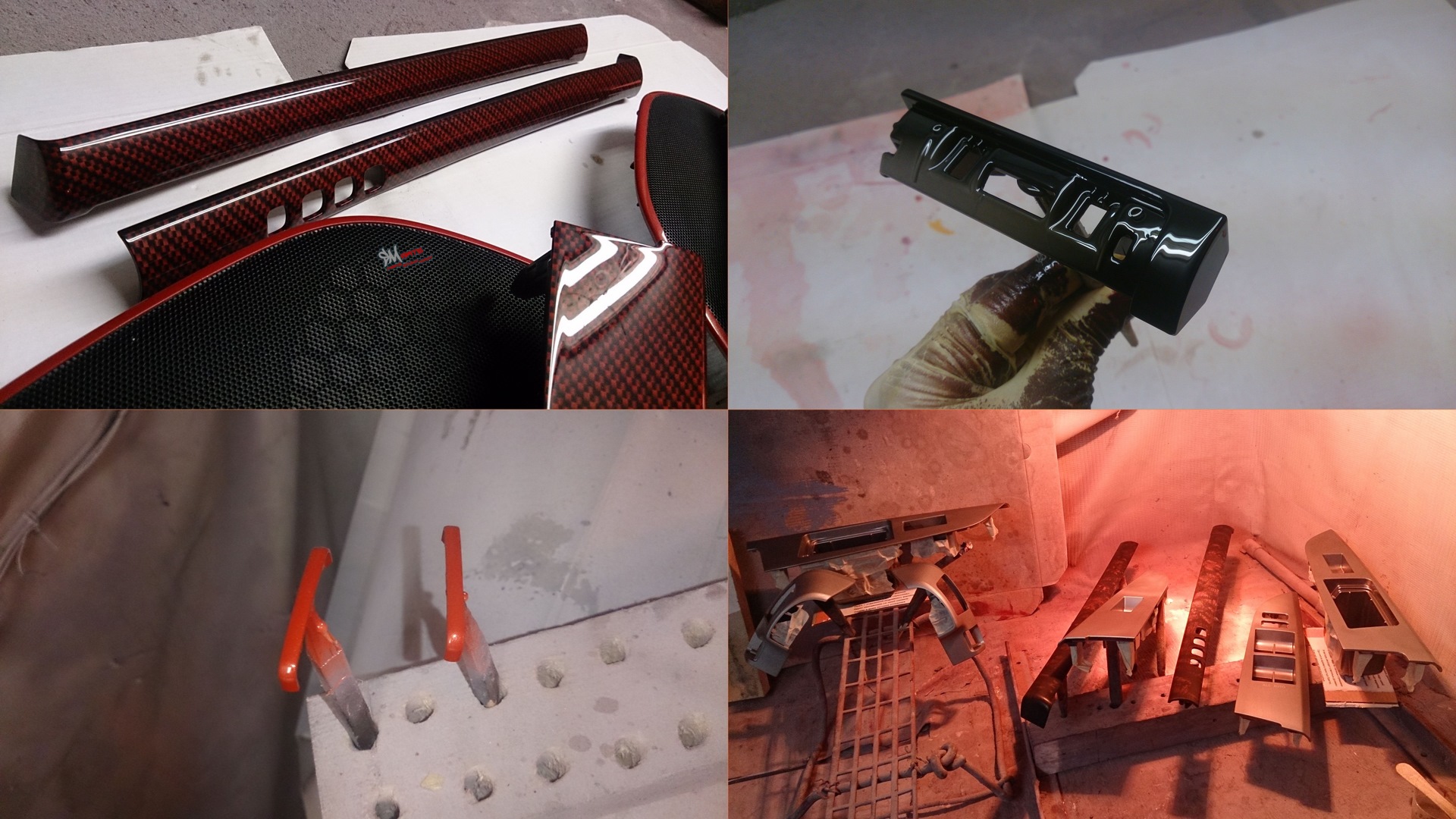 В автомобиле весь пластик был выкрашен в чёрный матовый, причем свежевыкрашен и выкрашен некачественно-от прикосновения краска просто отпадывала под пальцем…
