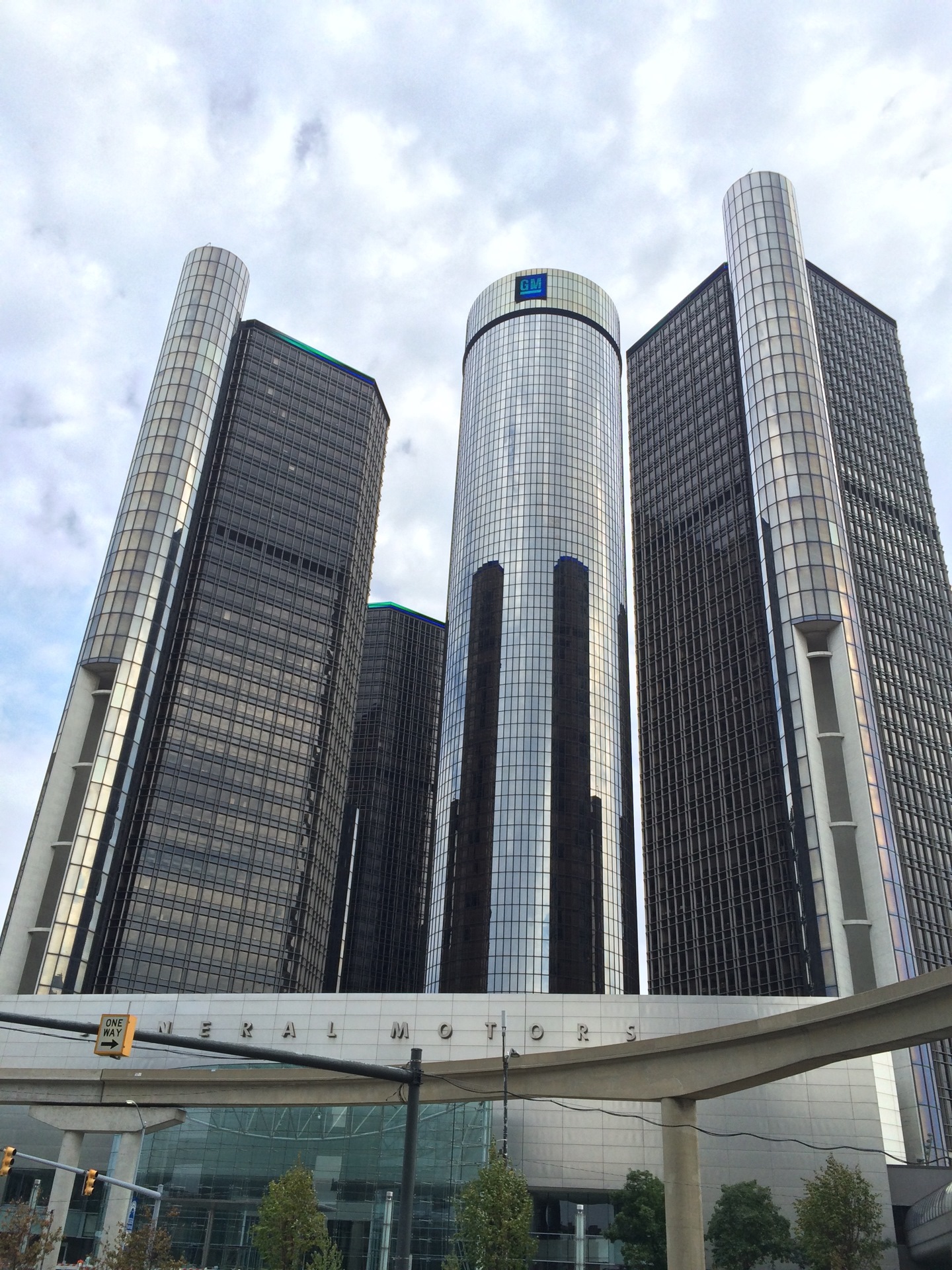 Большая американская автомобильная тройка — GM, Ford и Chrysler — все еще остается в Детройте. Штаб-квартира GM возвышается над всем городом, напоминая о своем величии.