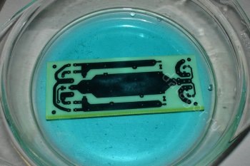 Периодически всплывает необходимость спаять какую-либо мелочевку, причем желательно на печатной плате, а не на макетке. Но печатную плату надо либо травить, либо резать проводники. Методик травления довольно много, одна из самых старых — травление в водном растворе хлорного железа, но оно оставляет трудносмываемые пятна на коже и фактически неотстирываемые на одежде, Один из лучших вариантов на мой взгляд — использование лимонной кислоты с перикисью и поваренной солью. Сам рецепт раствора предельно прост:
