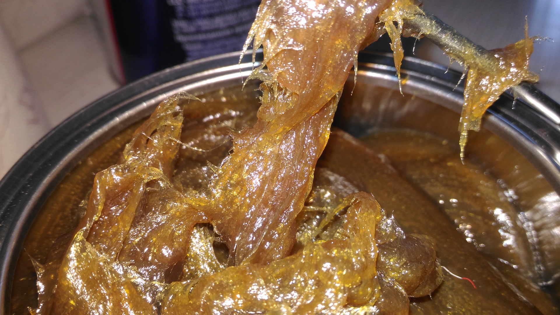 Когда в пальцах её разминаешь как будто туда ваты намешали и с пальцев не сразу вытрешь смазку.