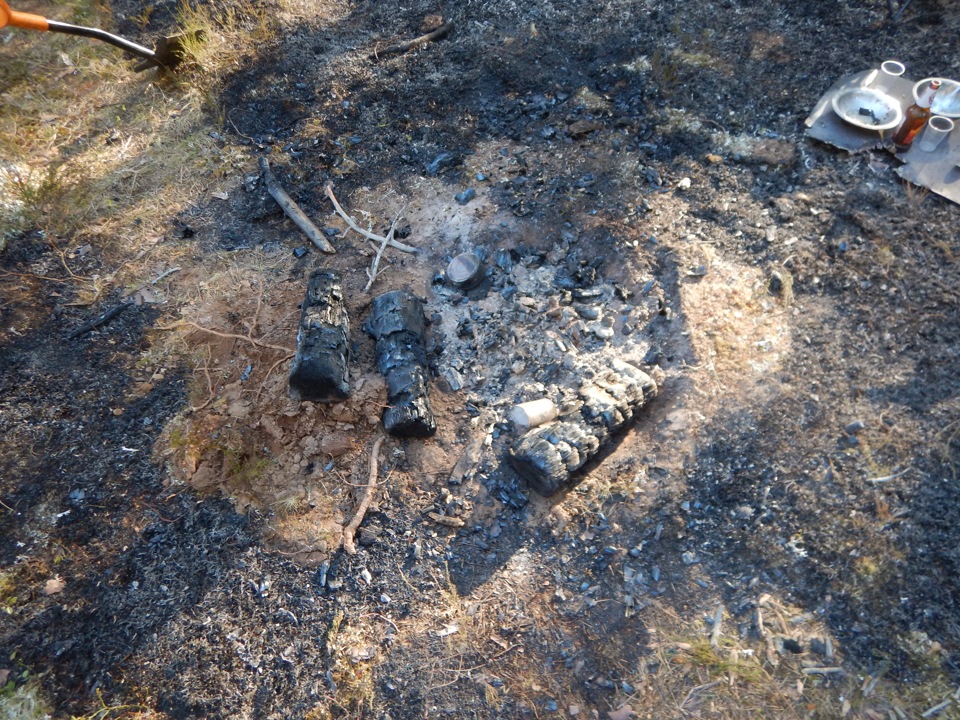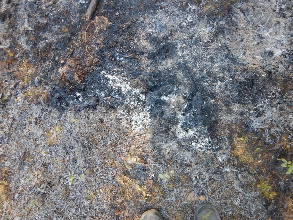 Он и был снят. Под кострище заглубление на 10 см, вокруг на полметра снята растительность. Там почва такая — сантиметр-три лишайника, дальше песок.