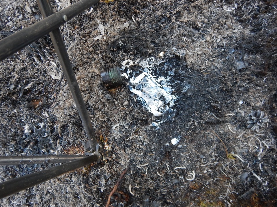 Главная ошибка вечера была совершена в половине первого ночи. Спать пошли не затушив костёр. Вообще говоря, это обычная практика. Предыдущие Боб знает сколько лет окопанное или выгоревшее по кругу кострище показывало себя безопасным. Что случилось в этот раз, я не знаю, но таких пробуждений у меня ещё не было. Из спальника пришлось прыгать в духовку — палатка полыхала. Низовой лесной пожар, распространяясь из кострища добрался до палатки и на краю поляны уверенно переходил в верховой — занималась крона ёлки.