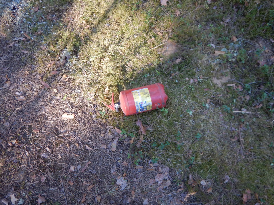 3. Огнетушитель на три, а лучше пять килограммов(пойду куплю пятикилограммовый), исправный и заряженный — иметь обязательно. Вы можете его просто возить всю жизнь, а может однажды он спасёт лес, а может и вашу жизнь.
