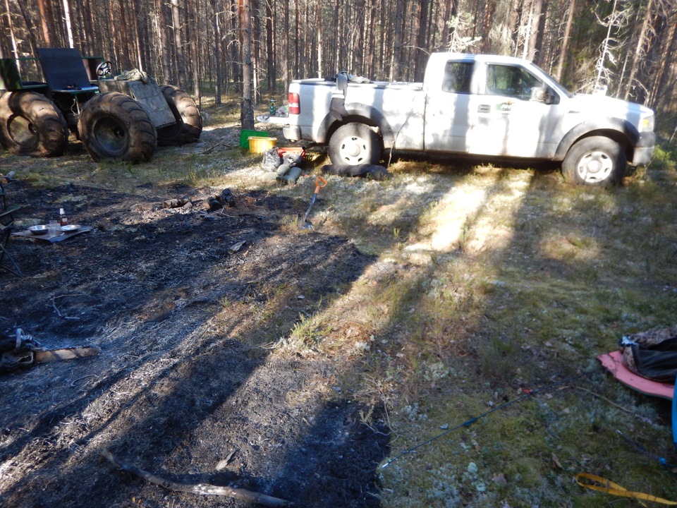 Пилу жалко и ботинки. Главное — жив и здоров, техника и лес — целы. Нас еще в школьном турклубе учили в таких условиях снимать не менее квадратного метра верхнего покрова до влажного грунта для костровища.