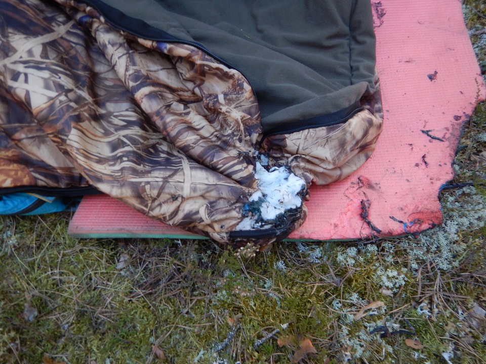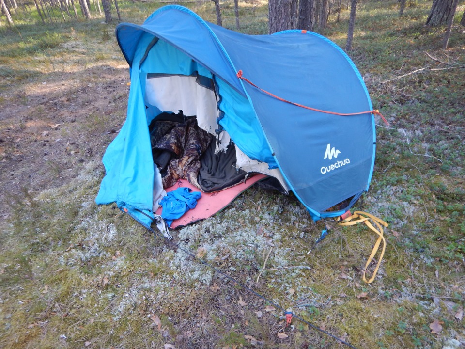 Первый раз в палатке спали на весенней, это да.