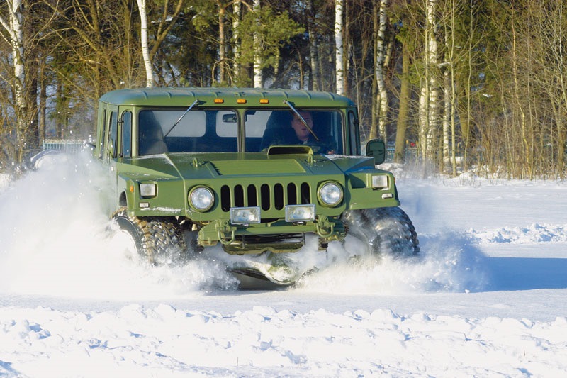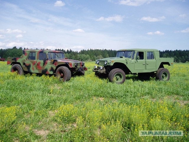 "А шо тут делает Хуммер?" Внимание! Это — ГАЗ 66 Партизан. Вдохновленные культовым дизайном американского "молотка"(Hummer h1) и простотой, проходимостью русской армейской "наковальни" (ГАЗ 66), четверо ребят решили построить универсальный внедорожник, совмещающий шарм американца и простоту русского! В основе — укороченная база ГАЗ 66, силовая установка сдвинута назад и вглубь рамы, что дает лучшую развесовку по осям, более низкий центр тяжести и как следствие — увеличенную проходимость. За передвижение отвечает 4,25-литровый двигатель V8 ЗМЗ-66-06, развивающий 125 л.с. и 294 Нм крутящего момента, выступающий в паре с 4-ступенчатой механической коробкой передач с двухступенчатой раздаточной коробкой. Передняя и задняя подвески зависимые на полуэллиптических рессорах дополнены амортизаторами от Газели. Кабина — переработанная от ГАЗ66, передние крылья- пластиковые, капот и задний грузовой отсек — сделаны из армированного стеклопластика по оригинальным лекалам и матрицам. Передние, задние фары от Шишиги, поворотники от ВАЗ 21011, а в качестве подфарников органично влились плафоны освещения салона. Колеса — разваренные на 70 мм газовские диски обутые в шины КФ-105А 18R низкого давления. Интерьр прост и по-армейски лаконичен, хотя и приправлен четырьмя мягкими и относительно удобными креслами. Еще из интересных характеристик — расход топлива около 20л на сотню, при снаряженной массе автомобиля 2200.