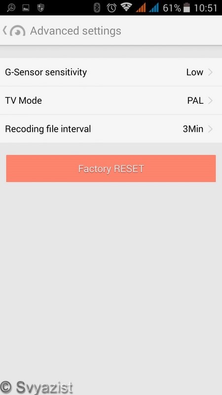 После включения регистратора с карточкой с прошивкой, нужно нажать сброс. Регистратор перезагрузится, при этом обновится прошивка. Потом зайти в приложение и форматнуть карточку. Для прошивки желательно использовать карту до 8 гигов.