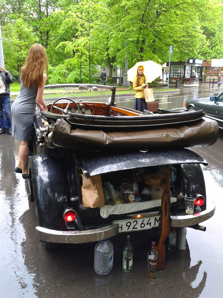 На такие мероприятия лучше вывозить не реставрированные машины! Это я по своей "Эмке" понял! Всё равно кто-нибудь не только на подножку, но и на крыло залезет грязным ботинком оставив след на краске…