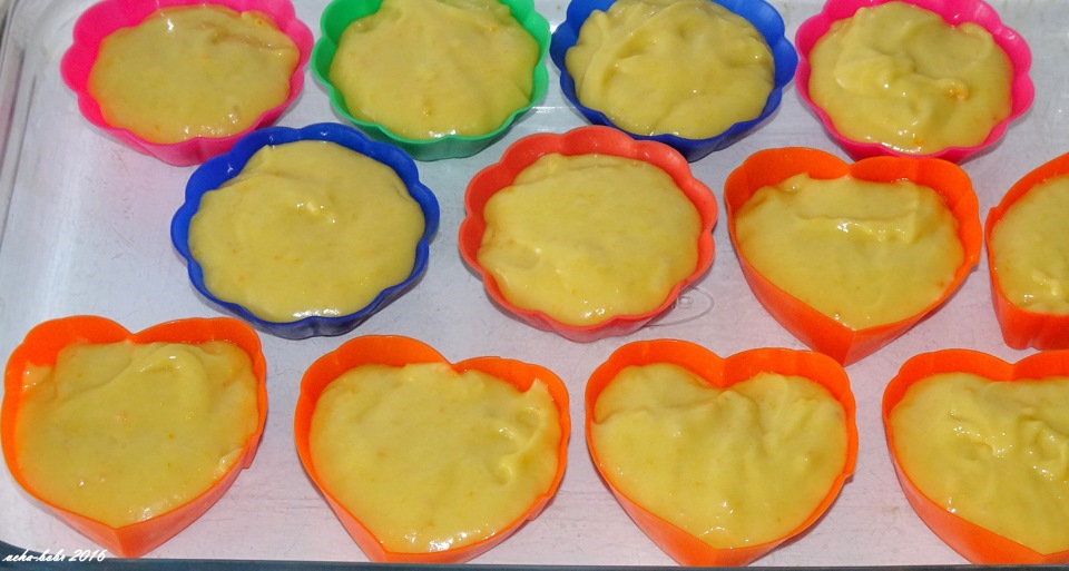 полученное тесто разложить по формочкам и отправить в разогретую духовку на 25-30 минут при температуре 180 гр.