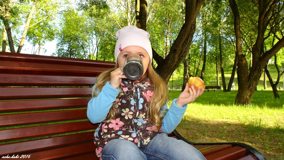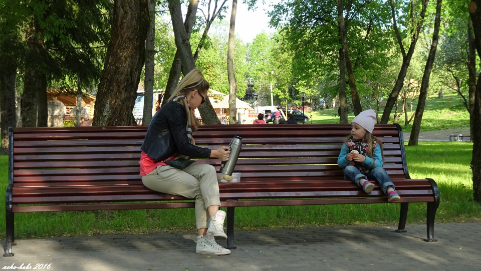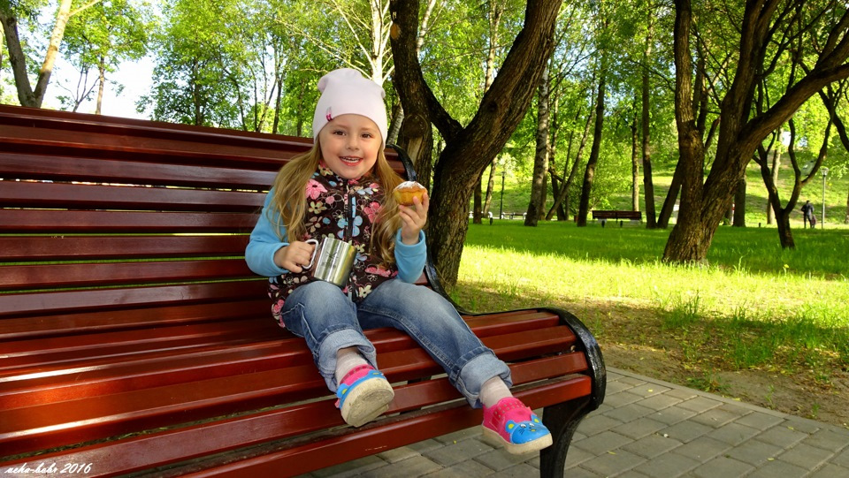 Красивый город, чистый. В таком парке и погулять, и чаю с кексиком перекусить приятно ) Ева разошлась:)) озорница:))