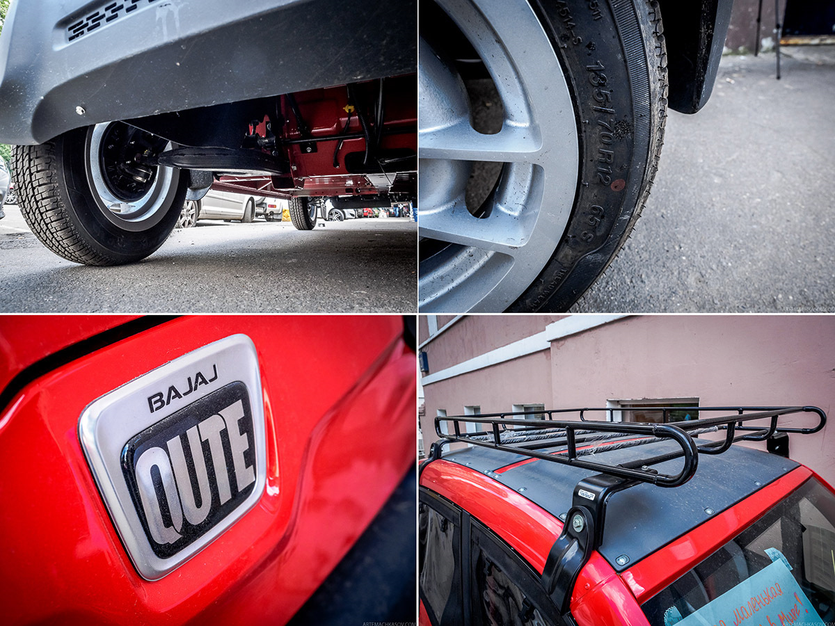 Торопиться за рулем Bajaj не хочется, несмотря на маневренность, даруемую субкомпактными габаритами. Тугое и лишенное обратной связи рулевое управление не имеет усилителя, как и барабанные (на всех колесах) тормоза. Управляемость тут — заложник ватных тормозов, маленьких колес (135/70R12), примитивной конструкции подвесок.