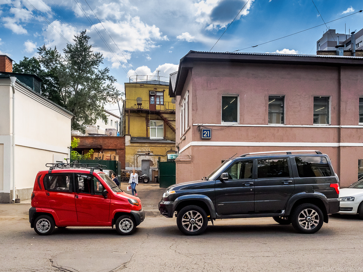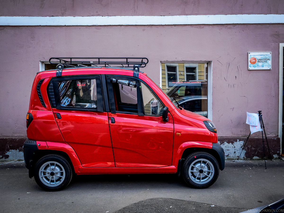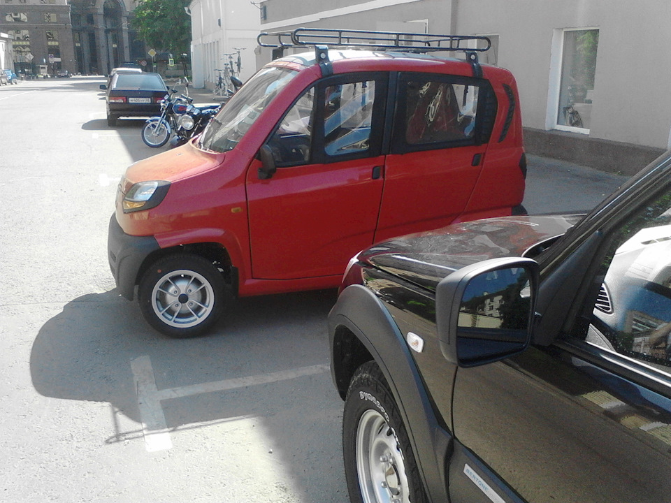 О, у нас у метро на таких машинах доставка из какого-то ресторана работает. Аппарат по сути даже не машина, у него мотоциклетный номер сзади один.