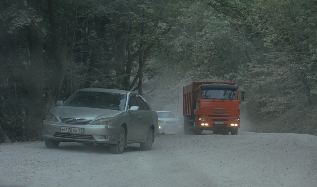 Майкоп-Туапсе км 49-54 (это от Апшеронска первые 5 км в сторону Хадыженска) в ремонте на все лето, пока нарезали, жопошно, надо аккуратно ехать. А для самых смелых есть Горячий Ключ — Хадыженск через Кутаис)))