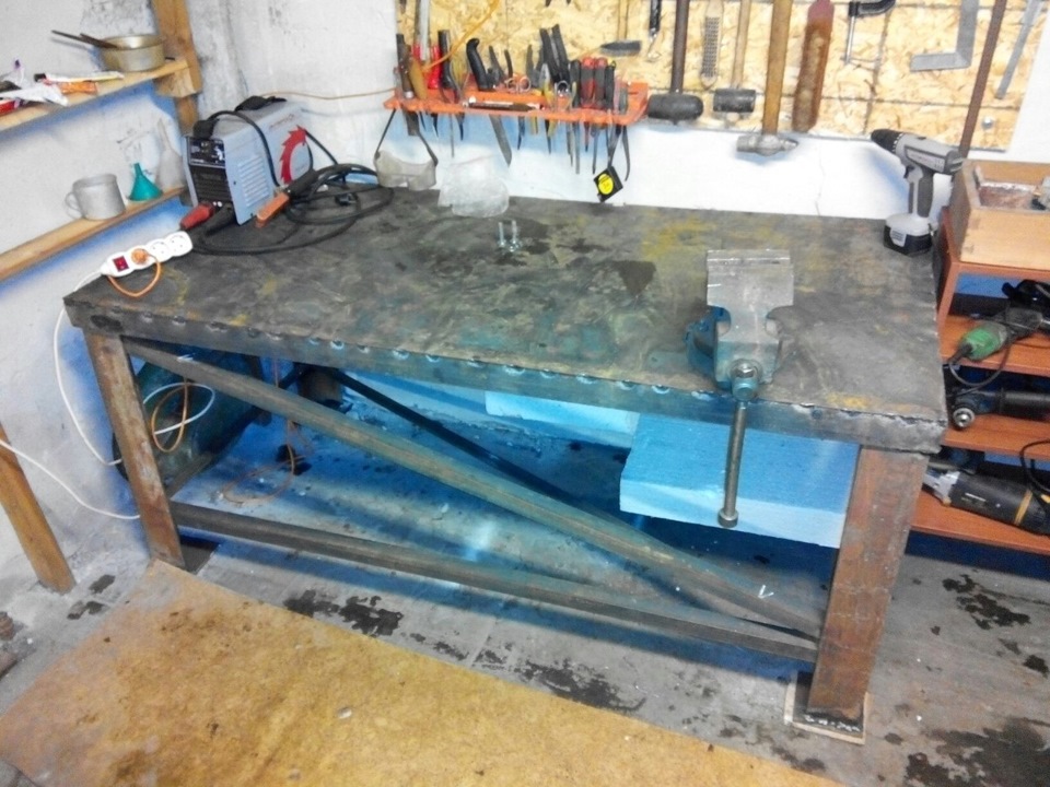 Решение — сварить полноценный стальной верстак, который бы выдерживал любые удары "судьбы" в прямом и переносном смысле.